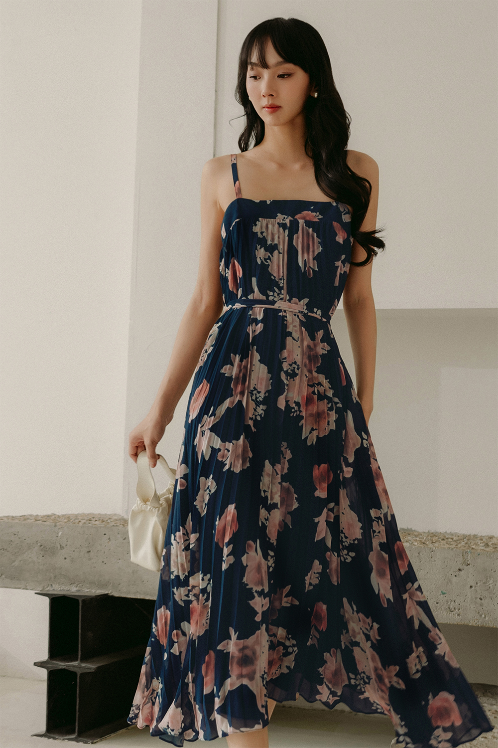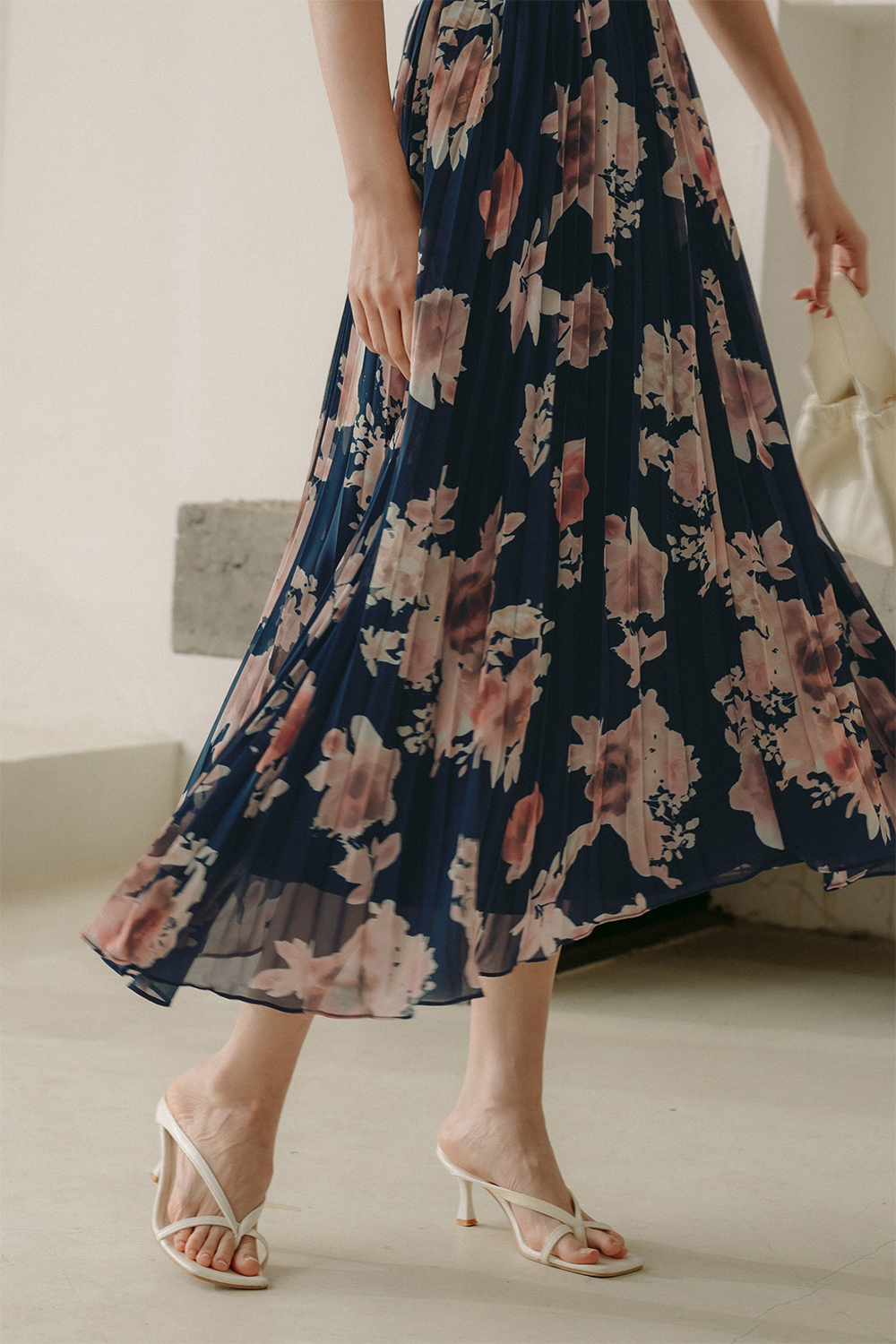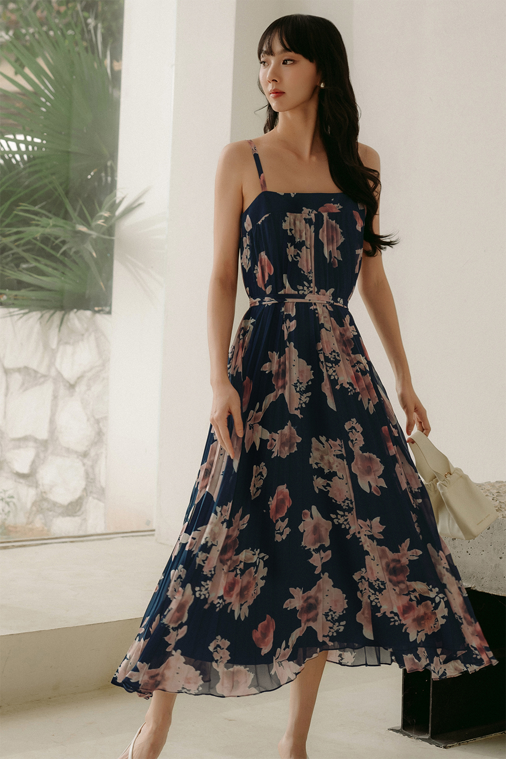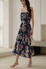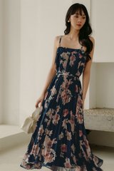 AUDELIA ETHEREAL FLORA PLEAT MAXI IN NAVY
