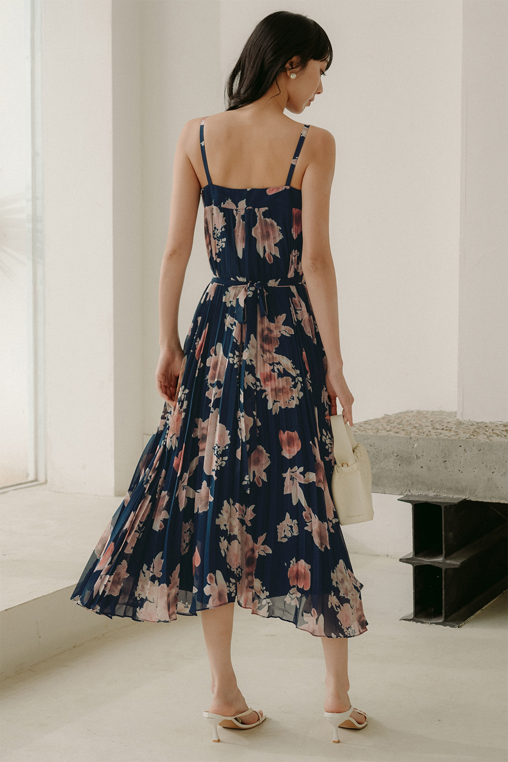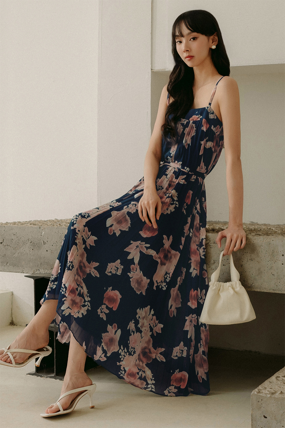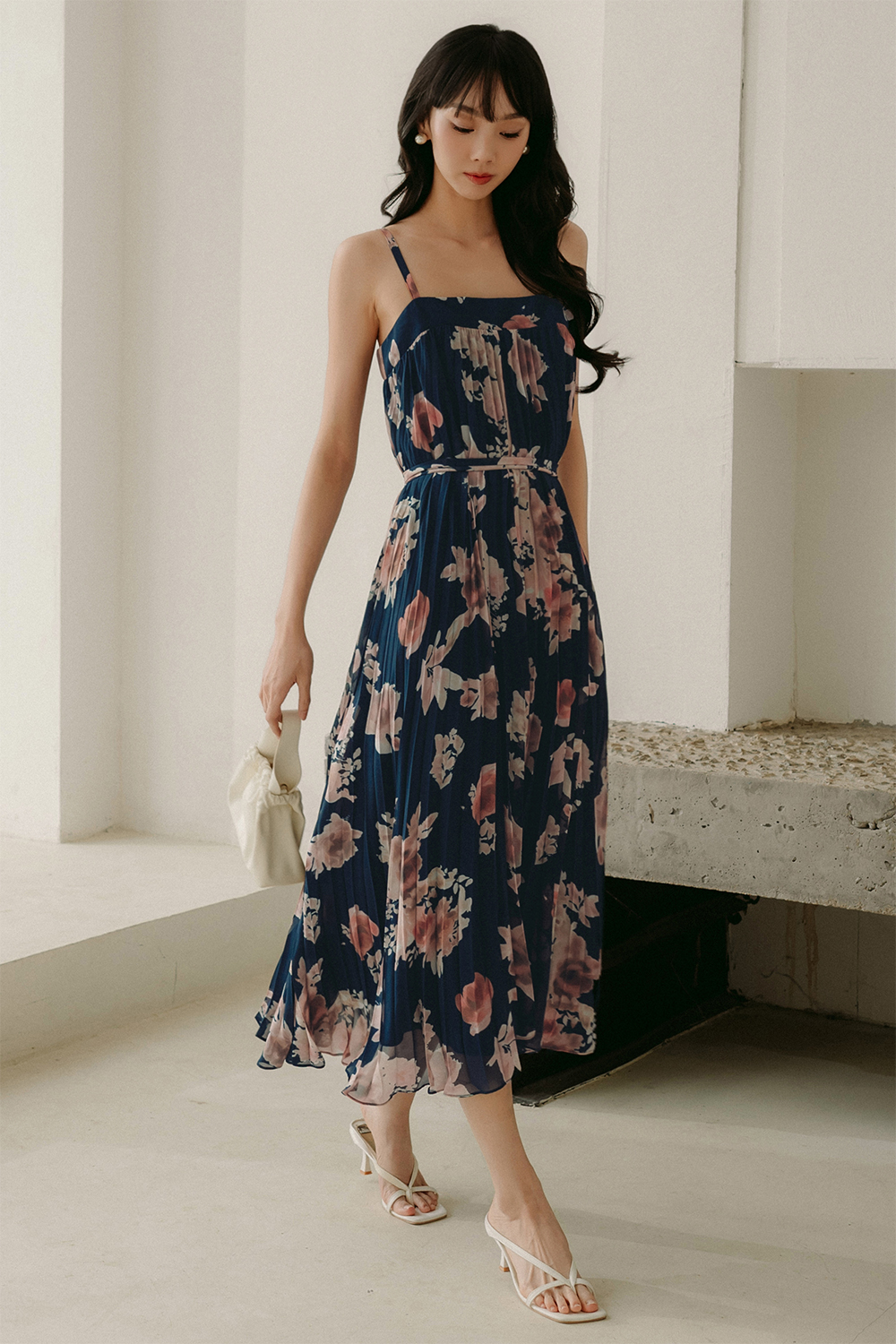 AUDELIA ETHEREAL FLORA PLEAT MAXI IN NAVY