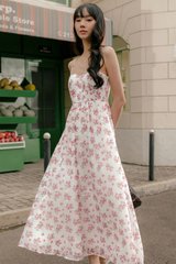 Sweetheart bandeau neckline with piping details.