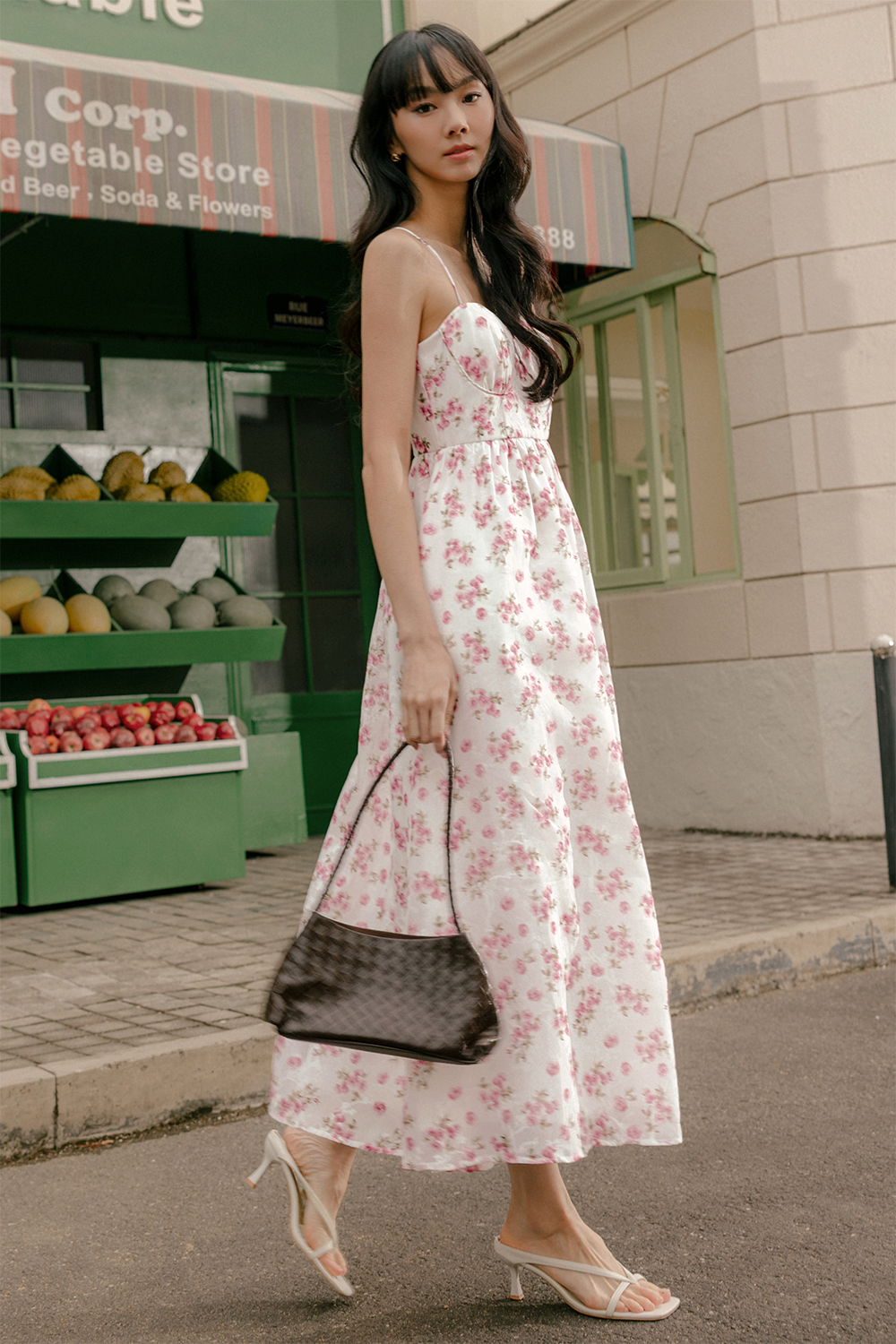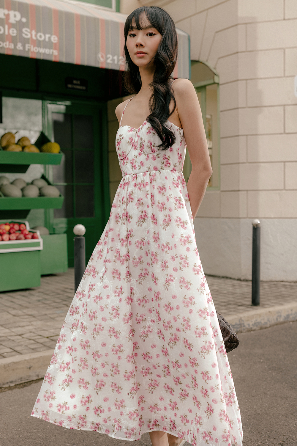 Concealed back zip. Non-adjustable shoulder straps.
