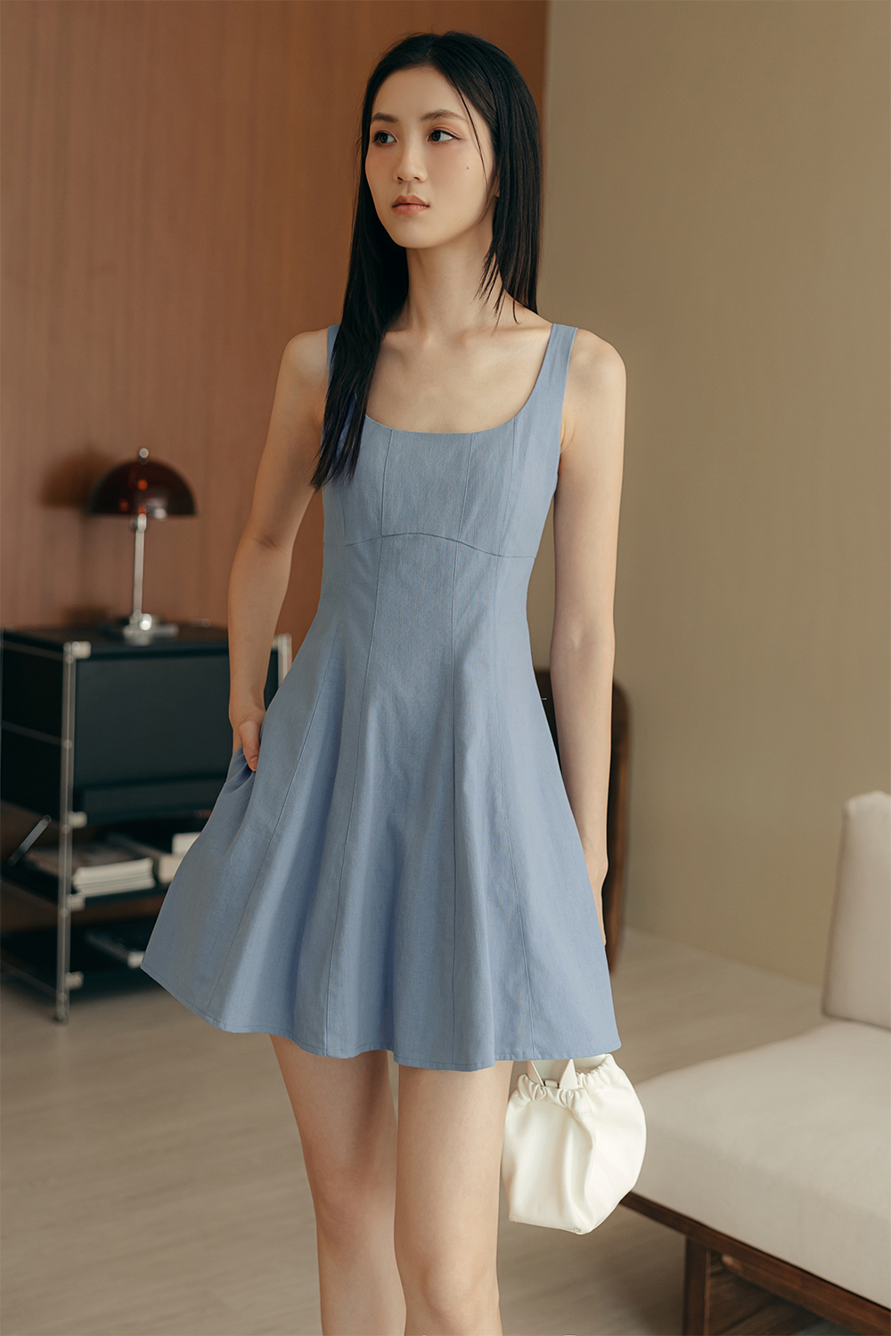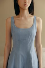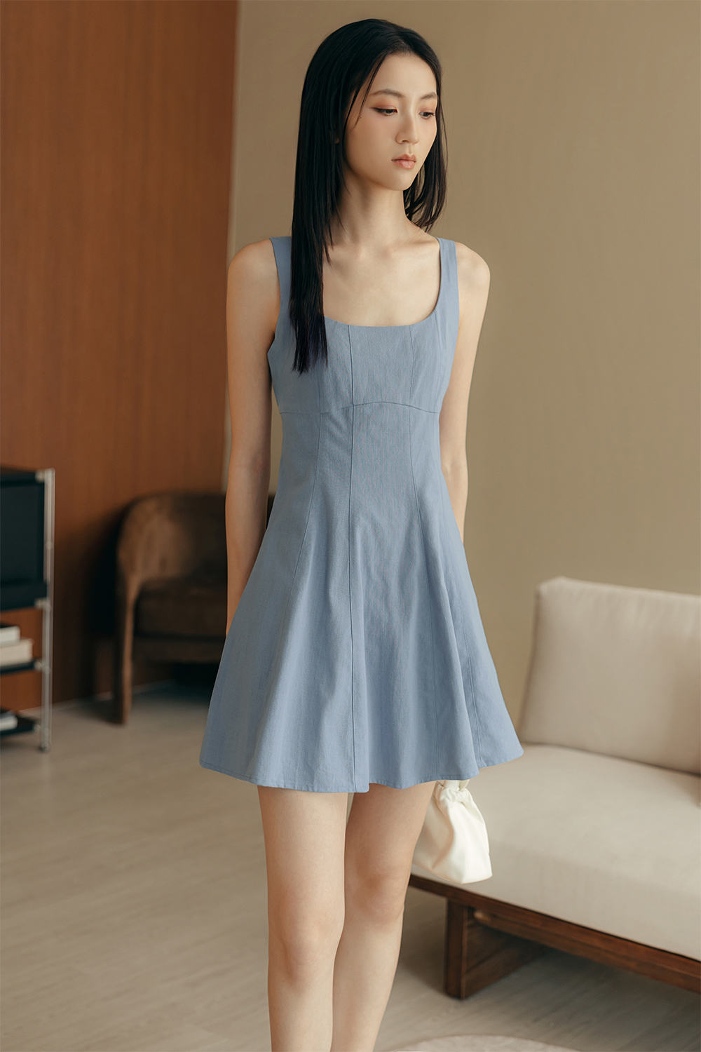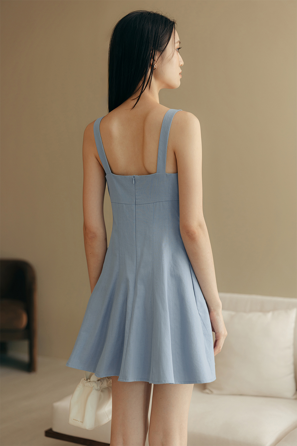 EME LINEN PLAYSUIT DRESS IN BLUE