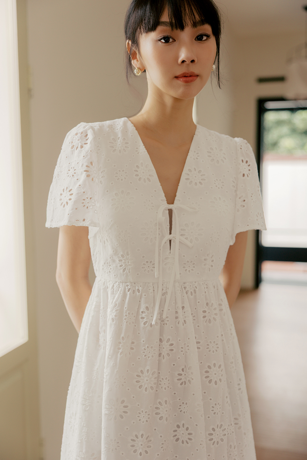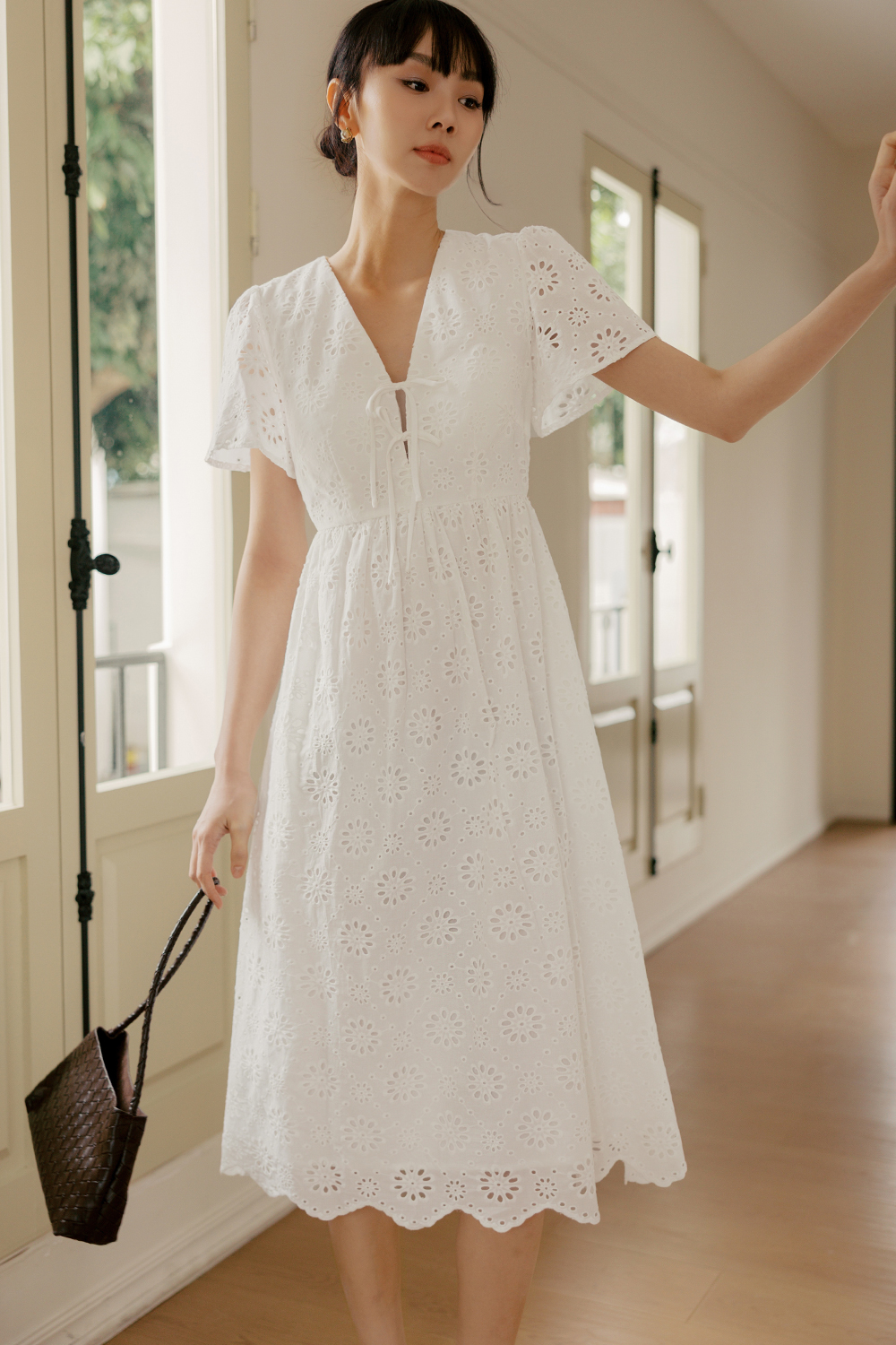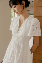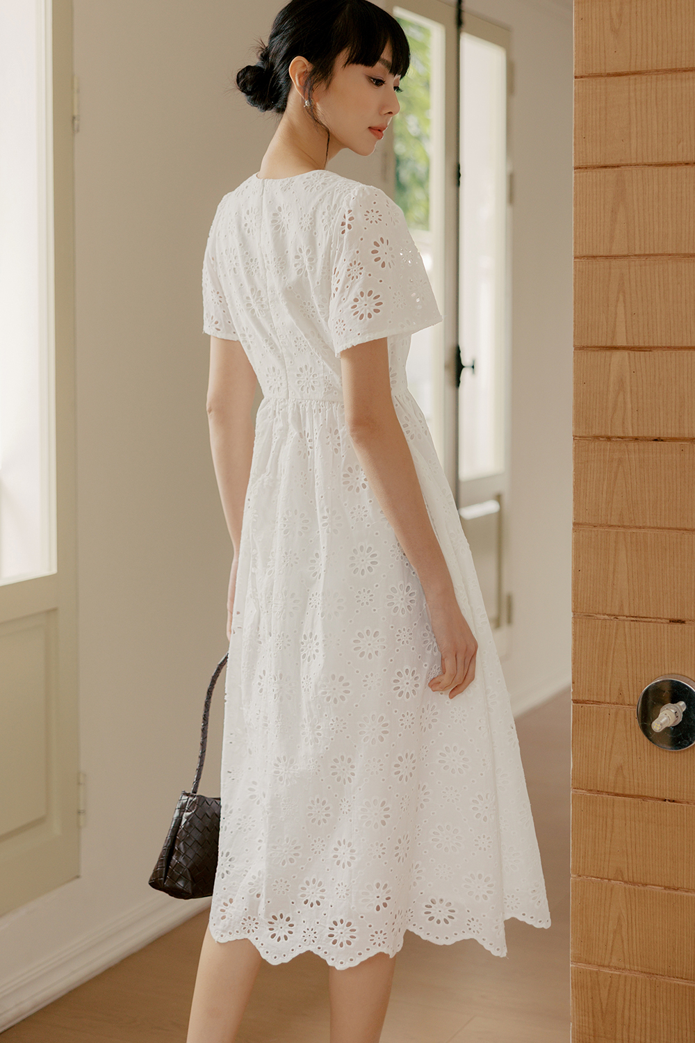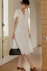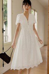 EMILO EMBROIDERY PADDED MIDI IN WHITE
