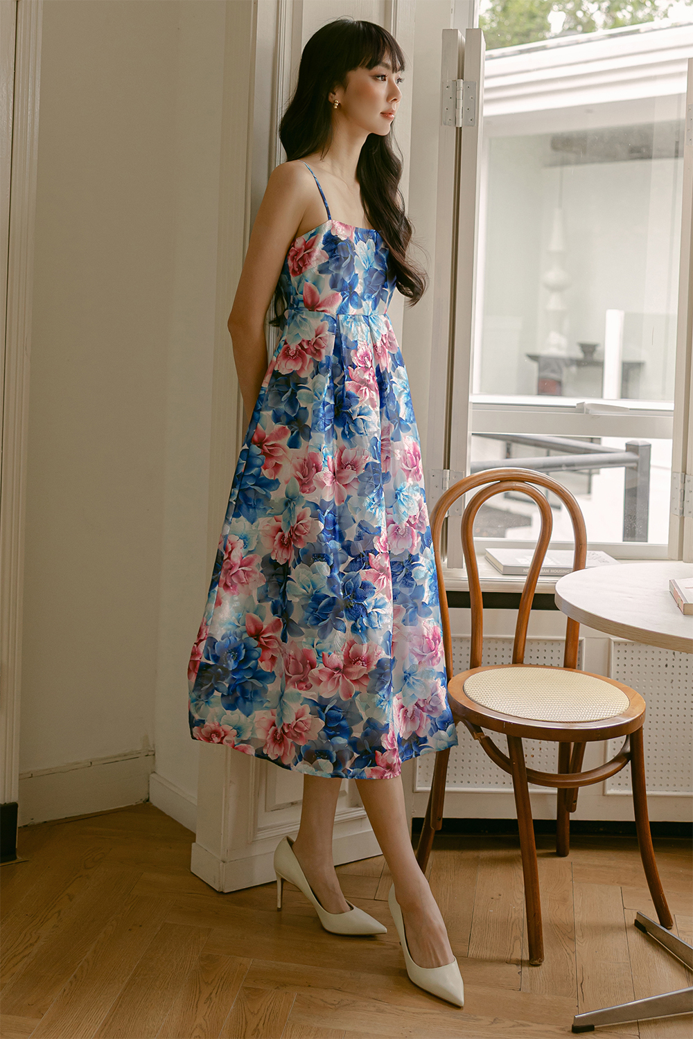 Adjustable shoulder straps. Concealed back zip.