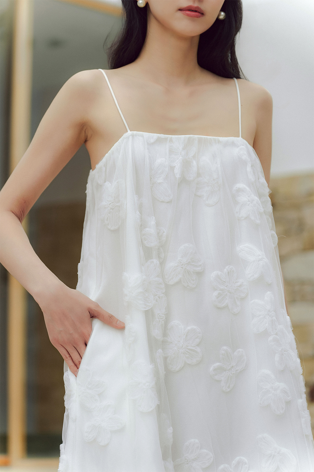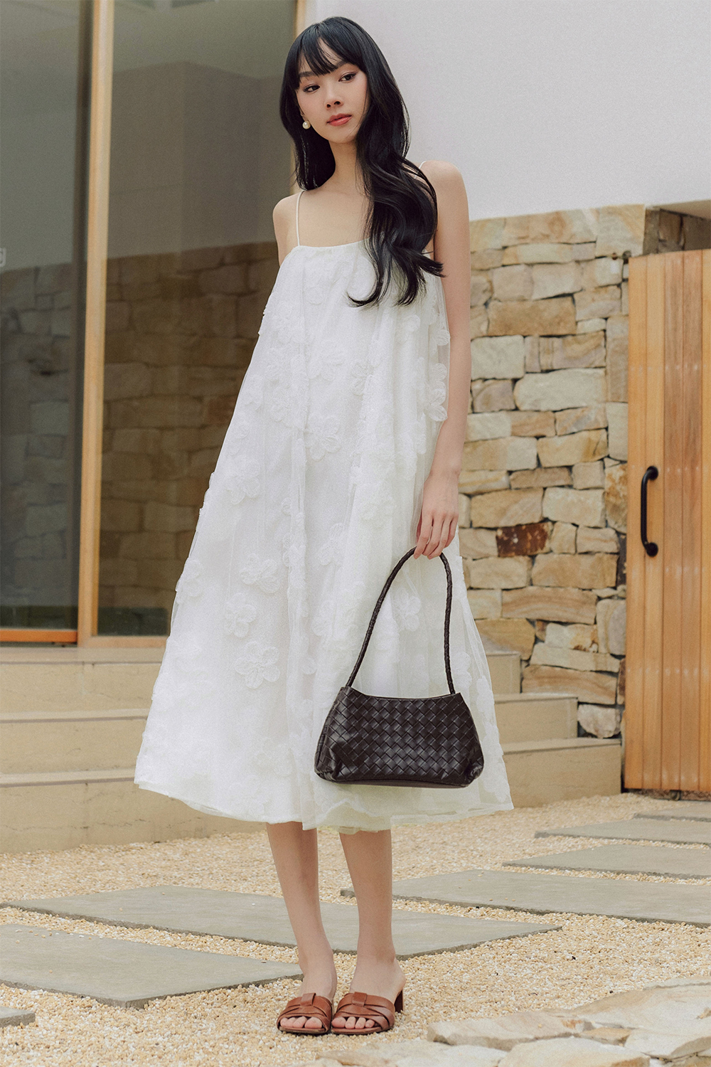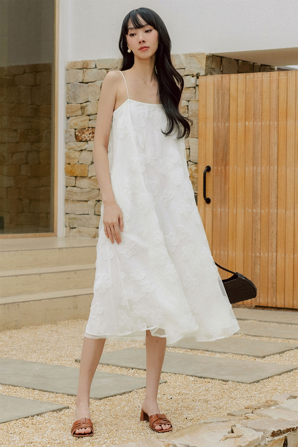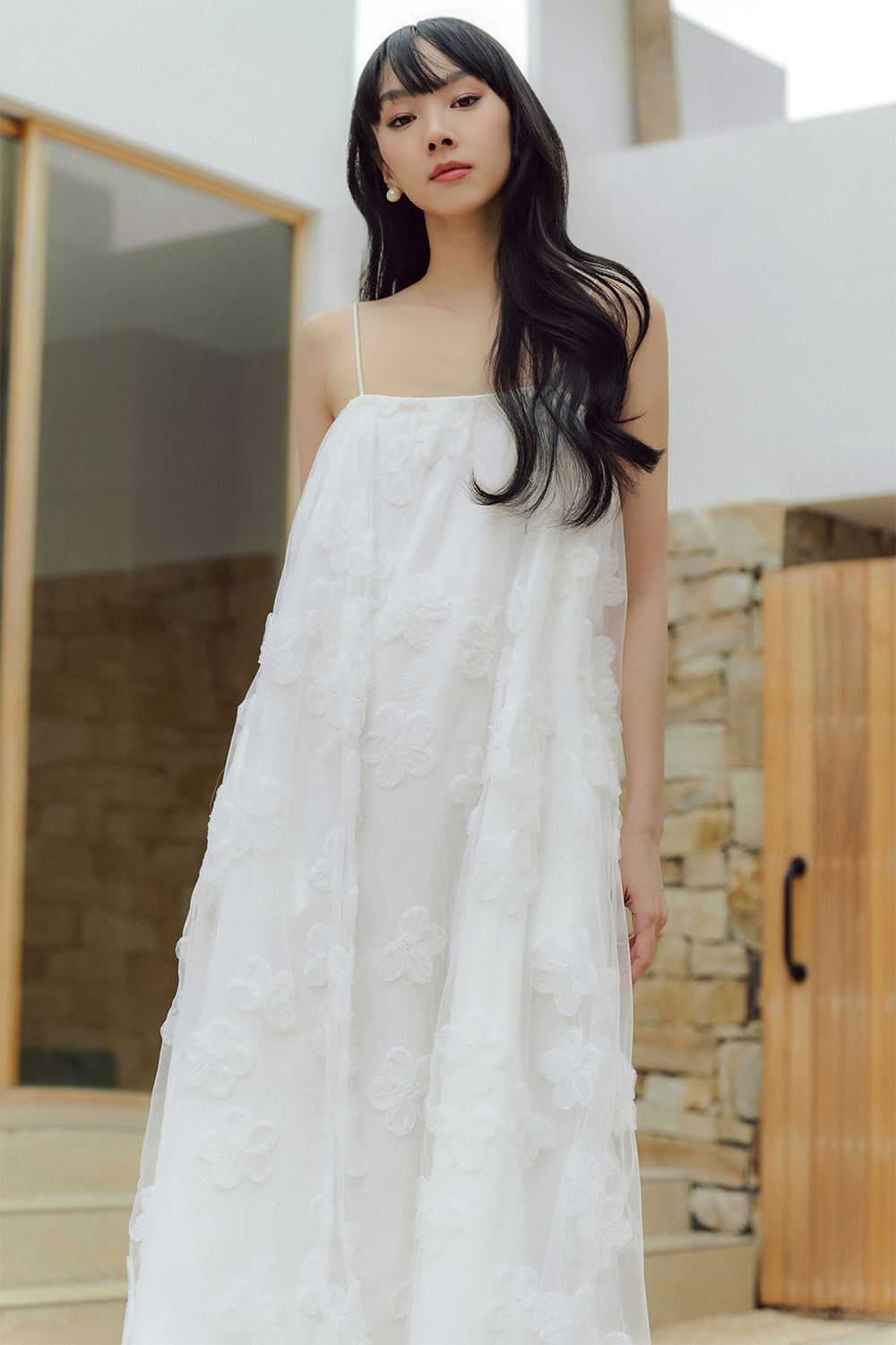 KELLAN APPLIQUÉ TULLE MAXI IN WHITE