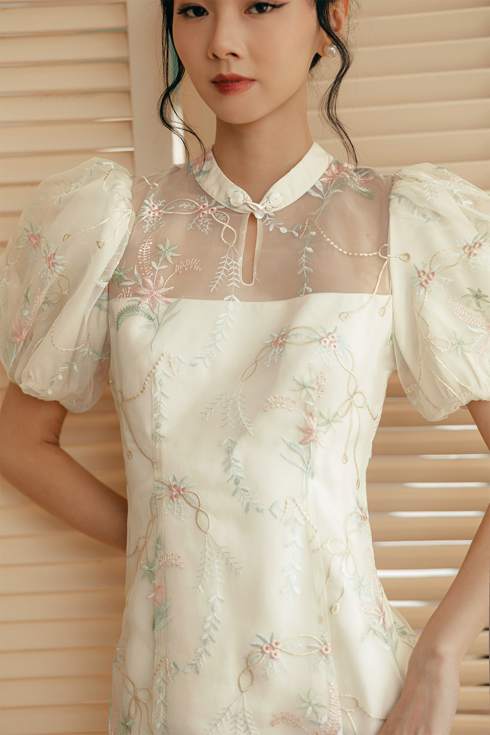 LILLA EMBROIDERY ORGANZA CHEONGSAM
