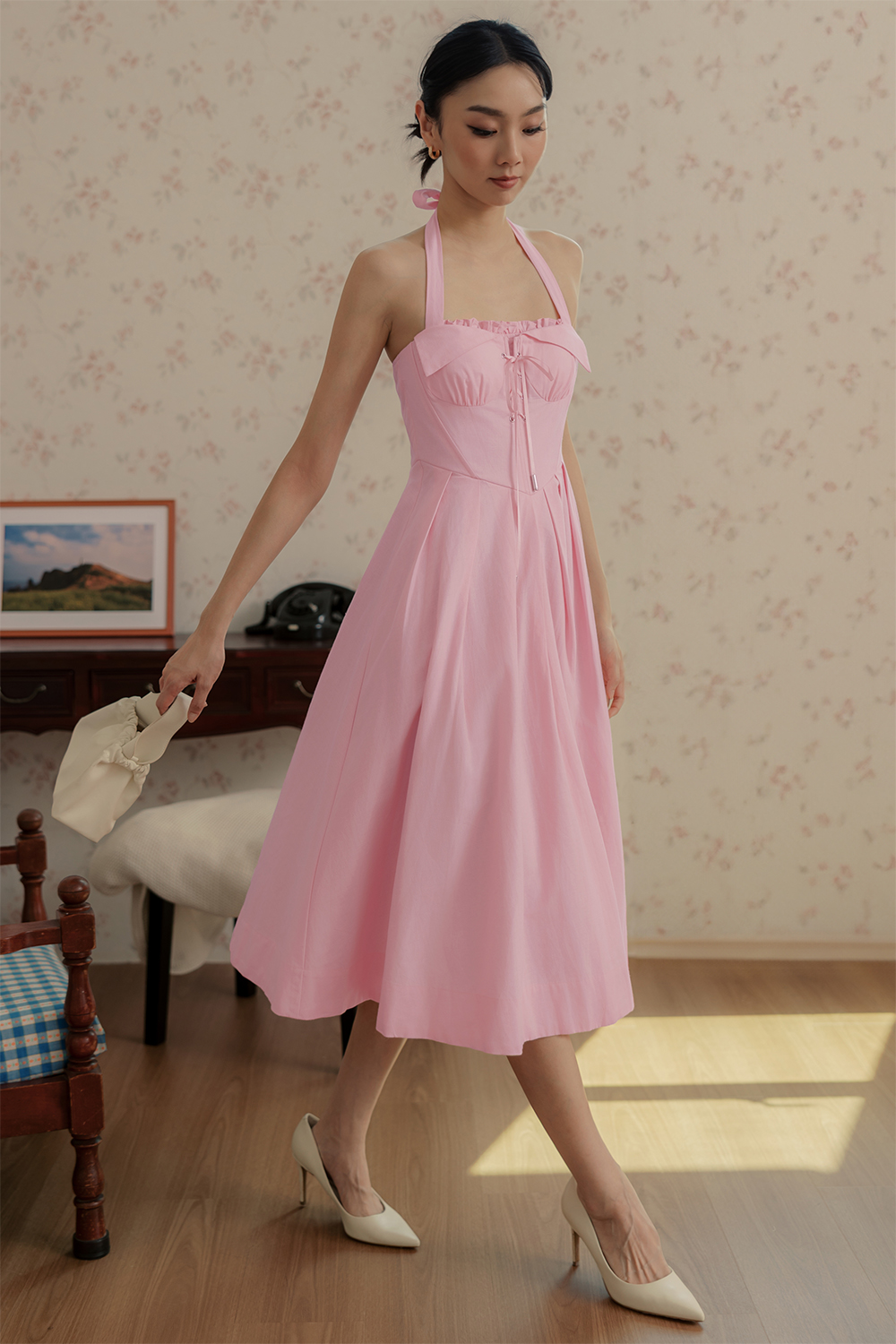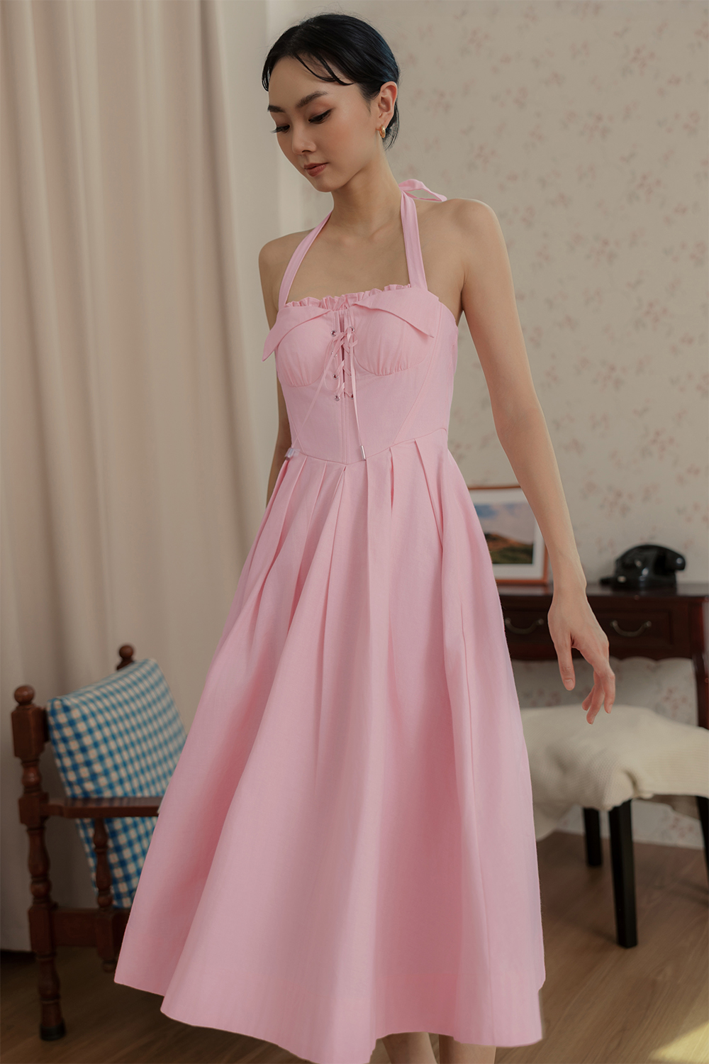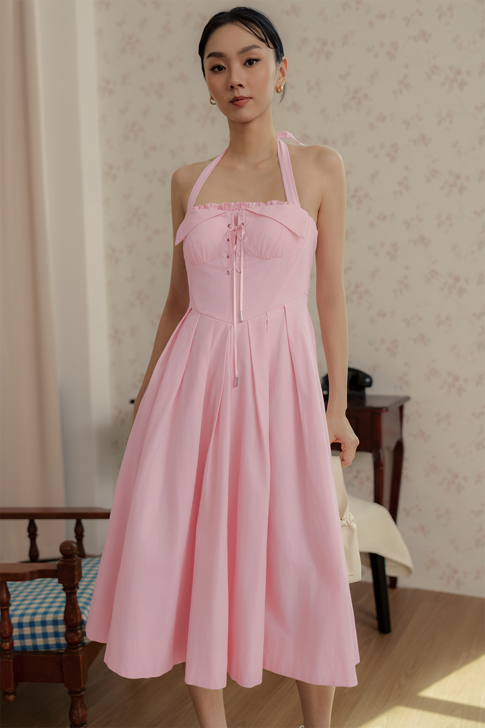 MICAH CORSET PLEAT MIDI IN PINK