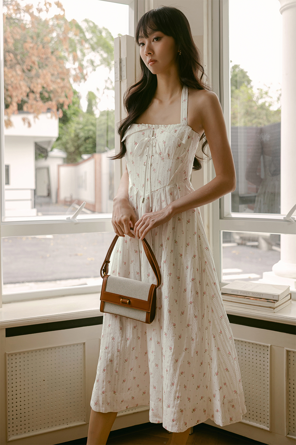 Functional halter tie details around neck. Non-detachable padding at chest.