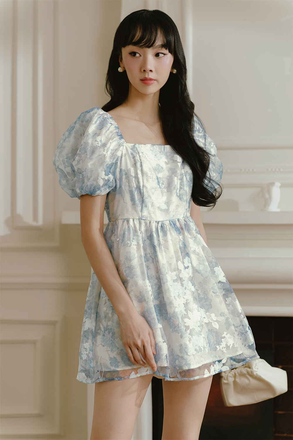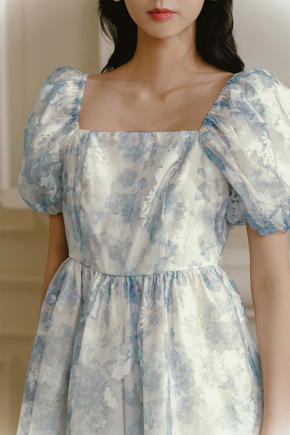 Babydoll silhouette. Concealed back zip.