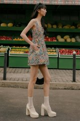 Features multi-colour floral abstracts woven on fabric.