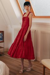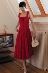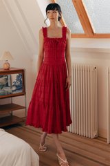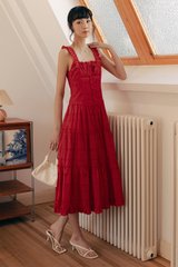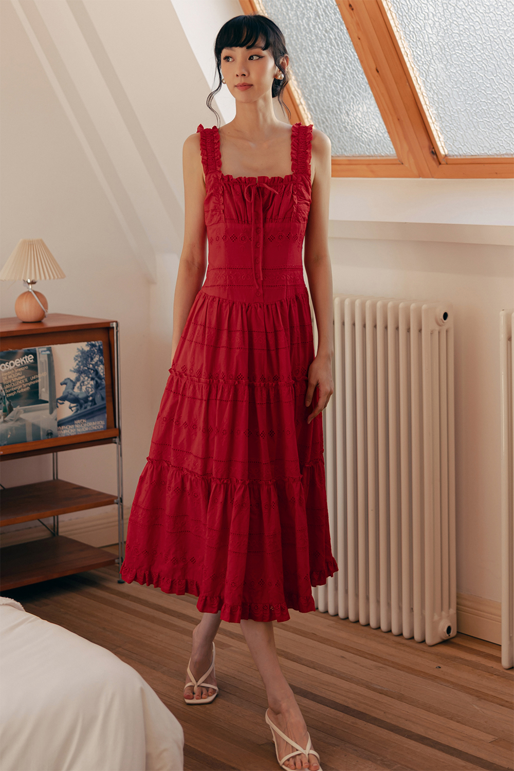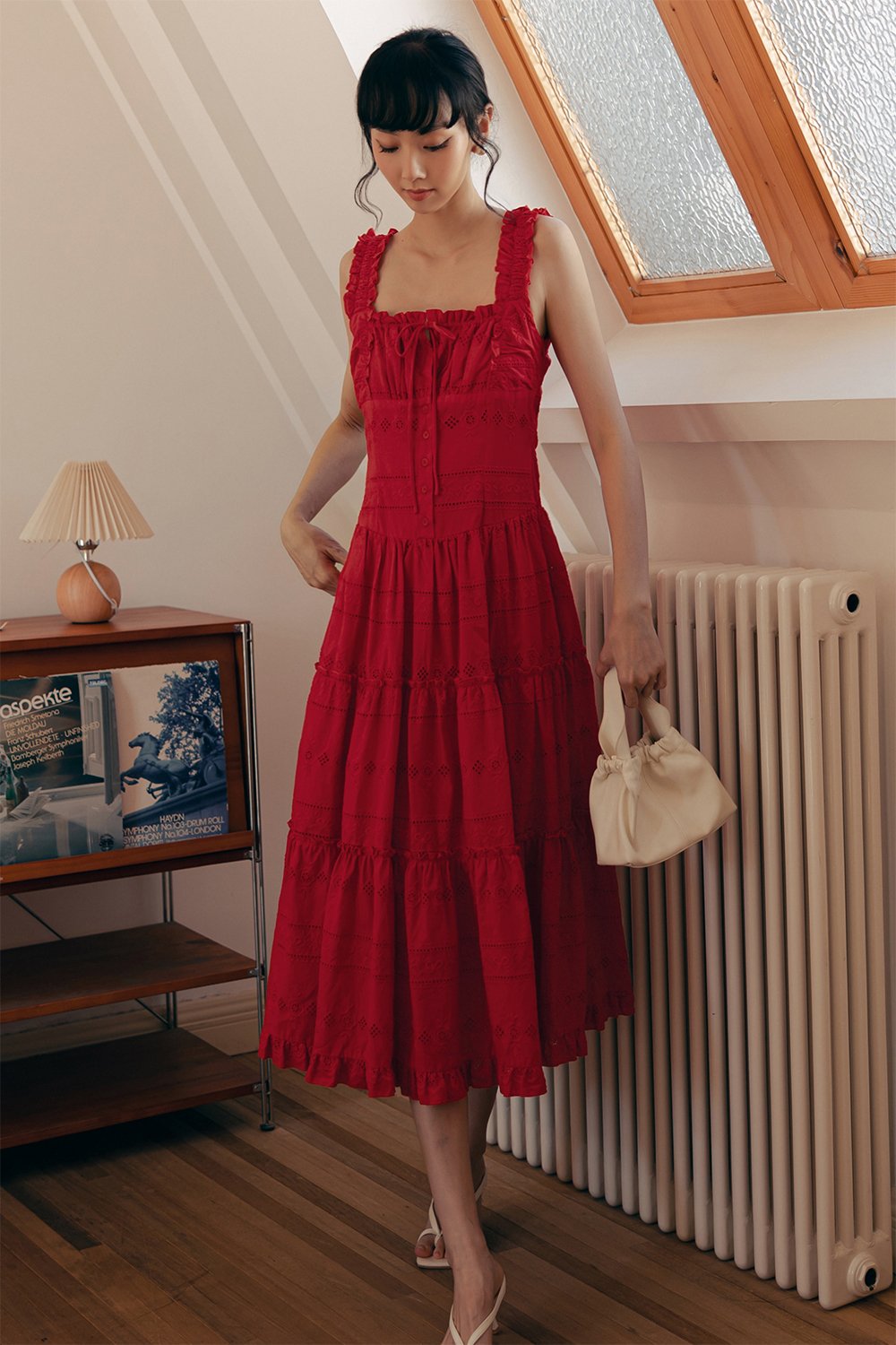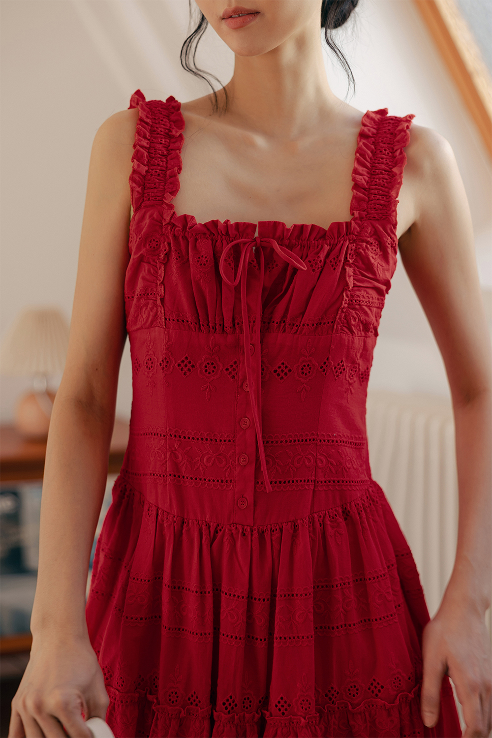 ZOIE BRODERIE EMBROIDERY TIERED MAXI IN RED