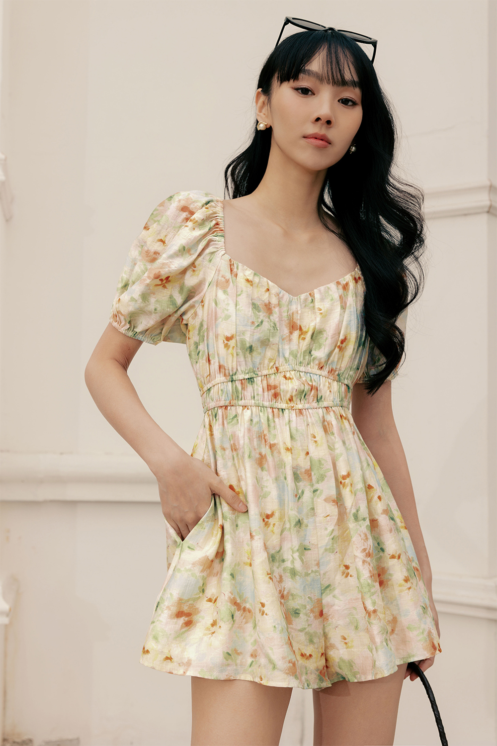 CHRISLEY FLORAL TENCEL PLAYSUIT IN BUTTER