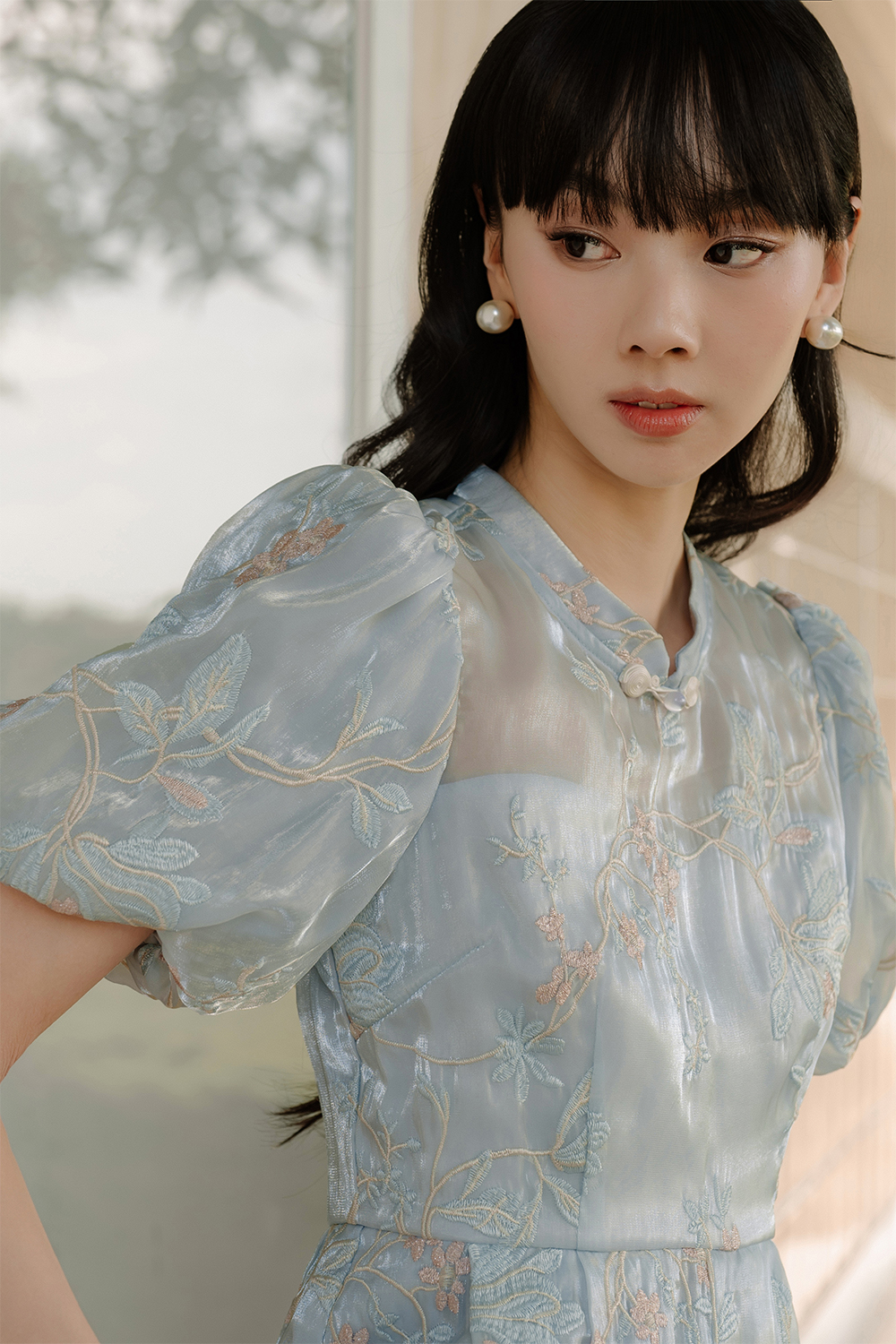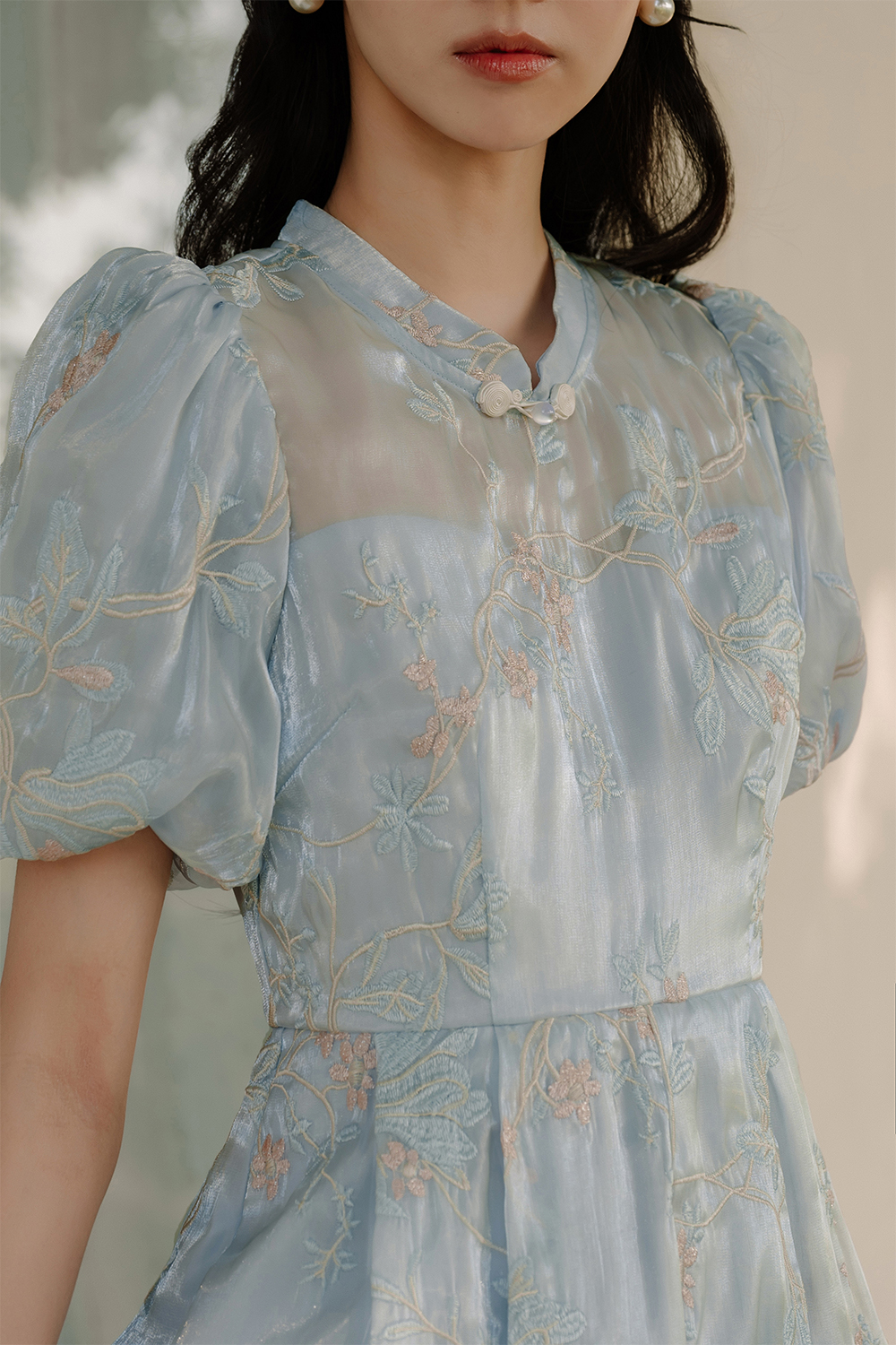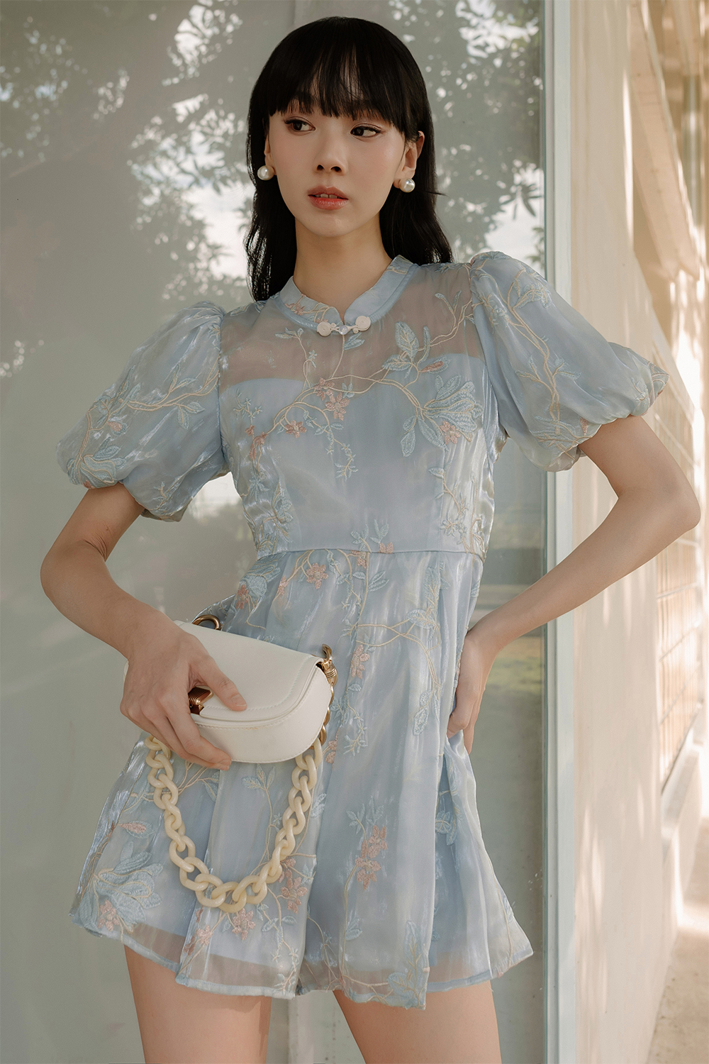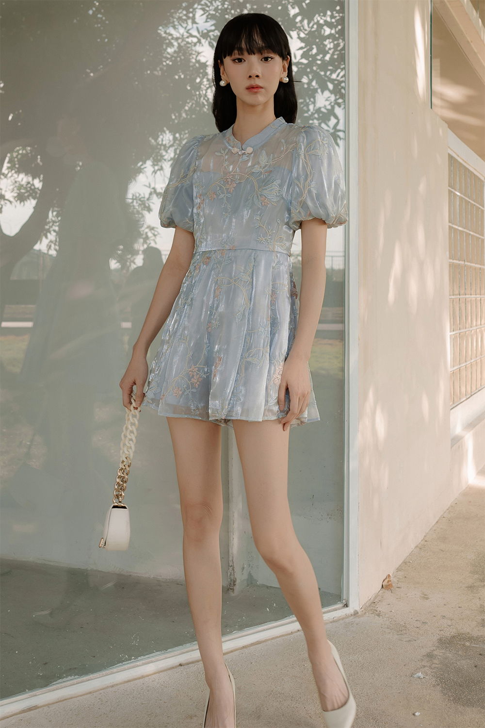 HANAMI ORGANZA CHEONGSAM PLAYSUIT IN BABY BLUE