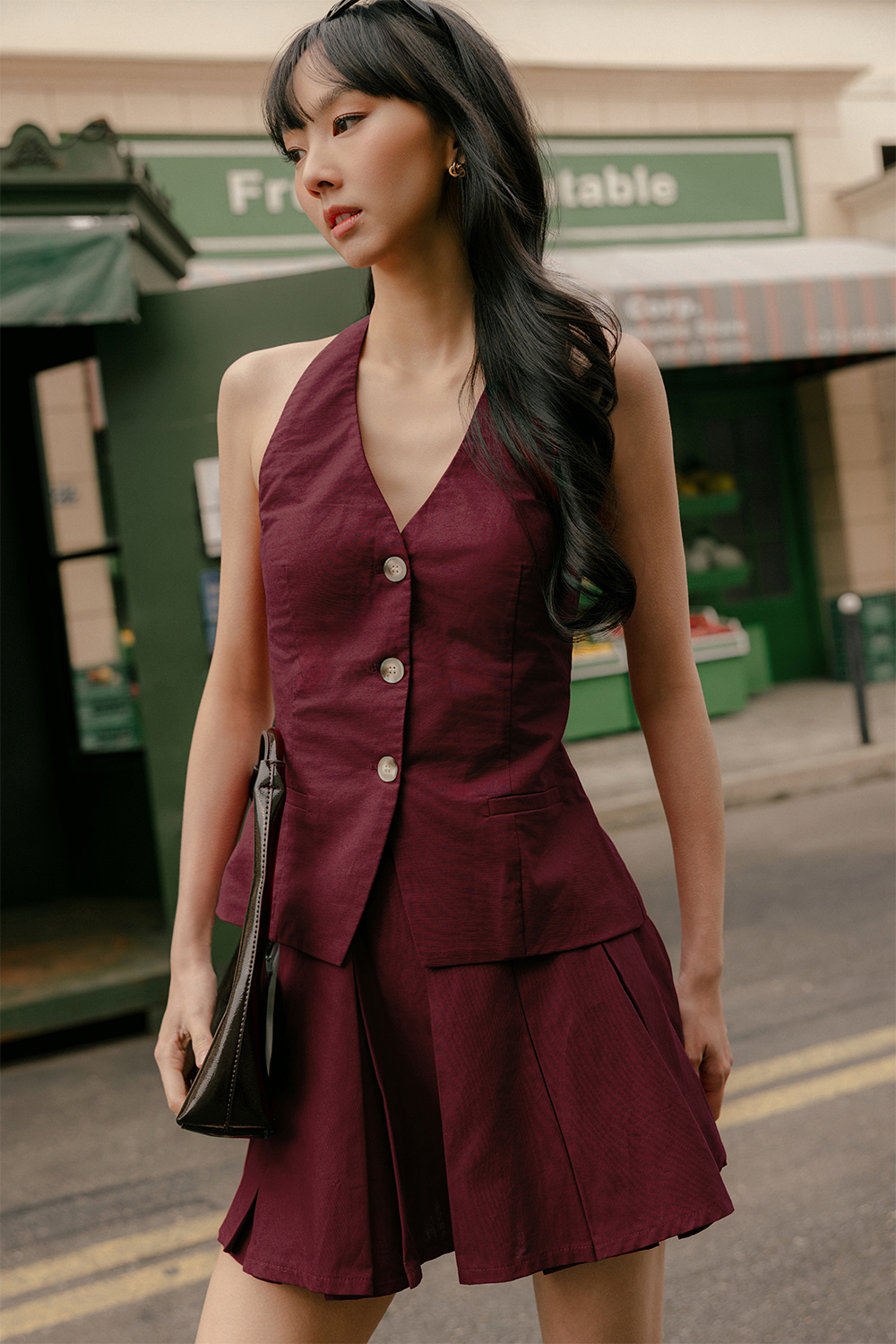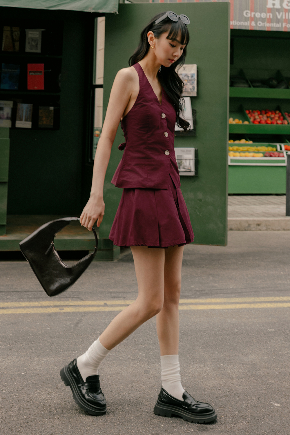 NOAH LINEN PLEATED SKORTS IN WINE RED
