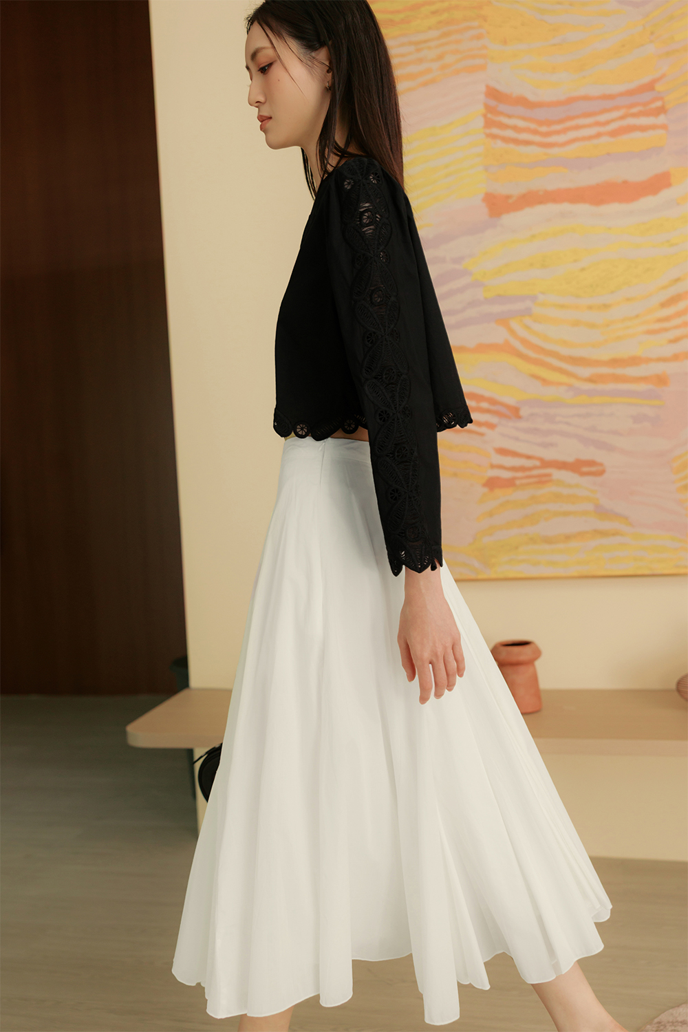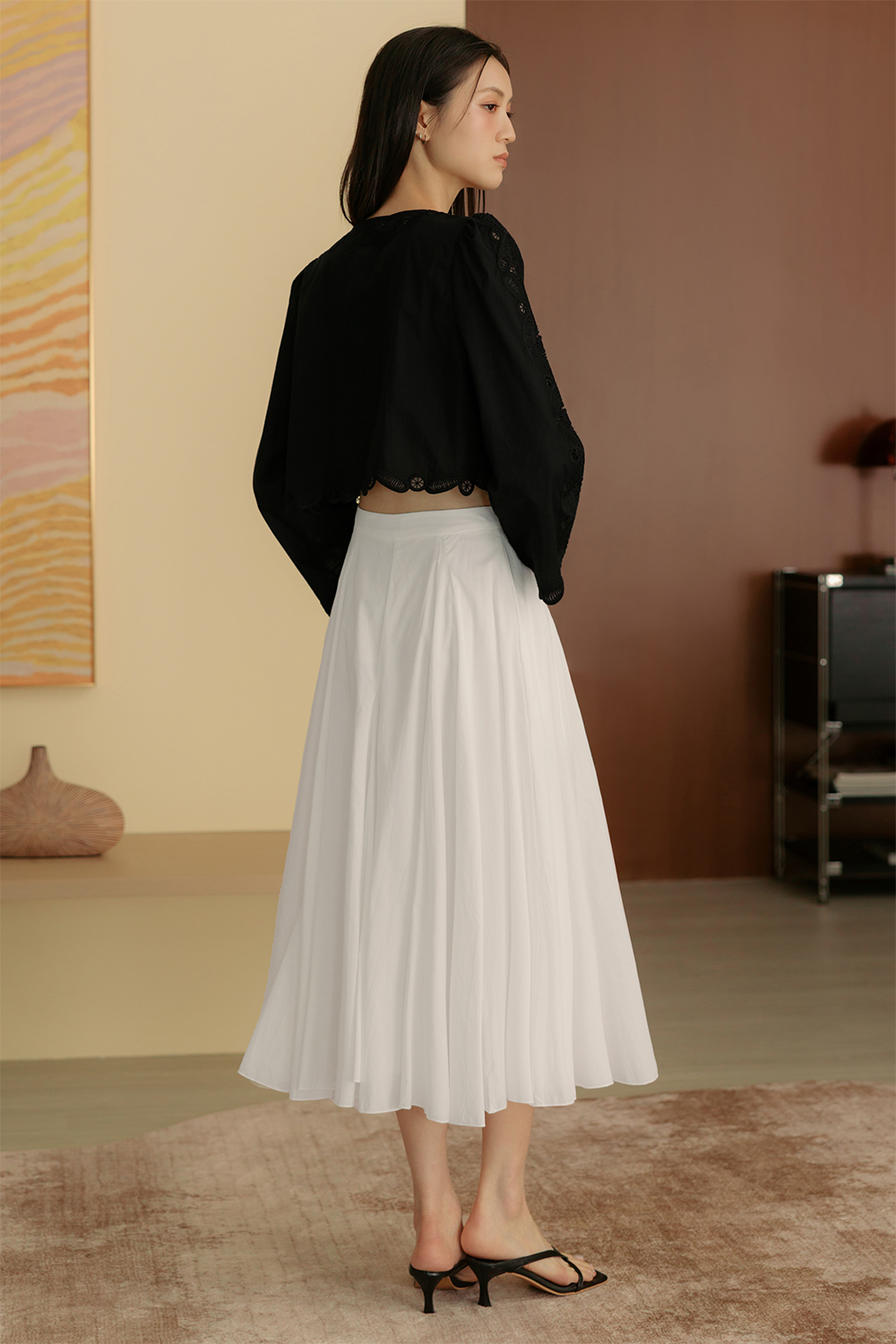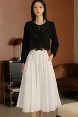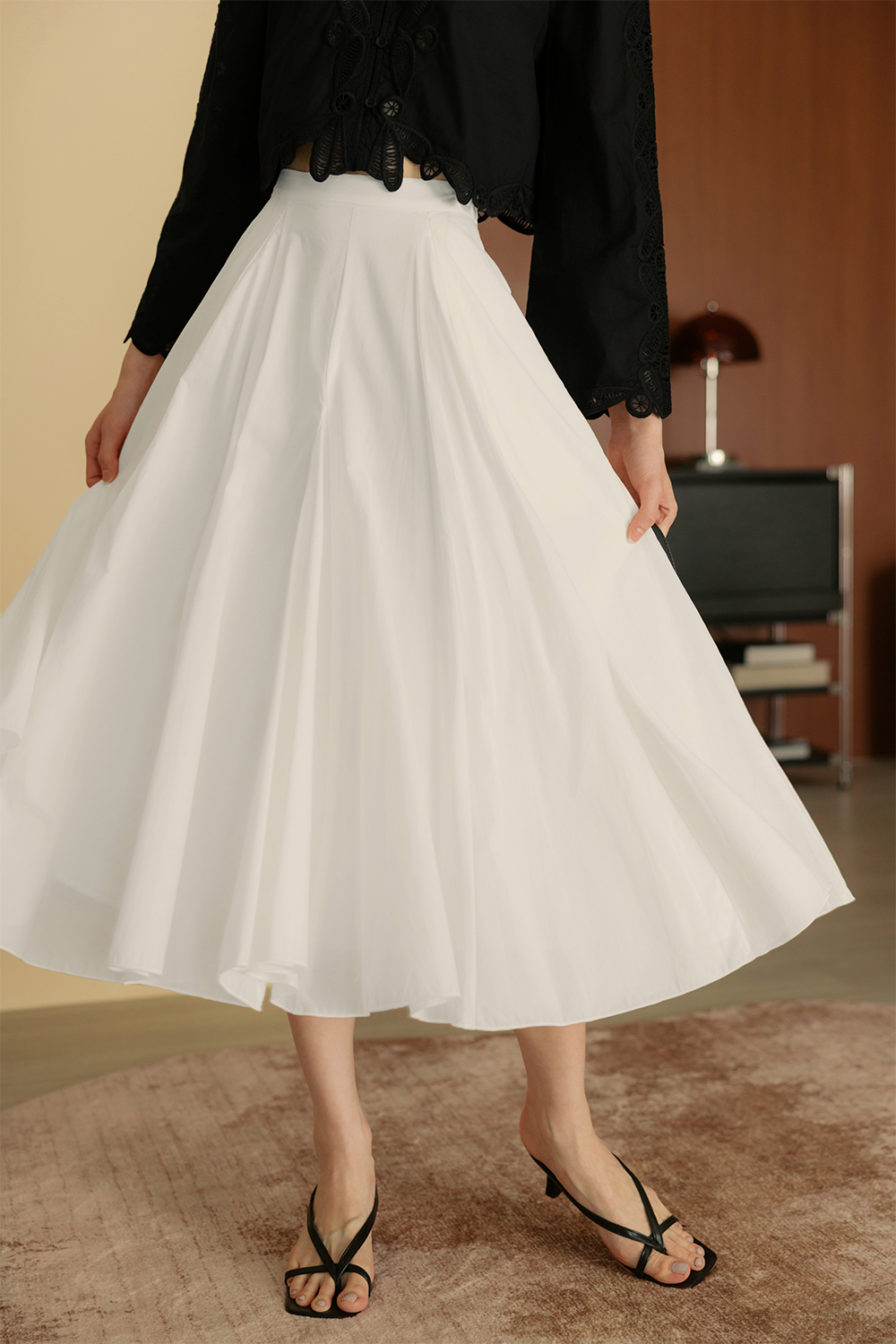 Handkerchief circle skirting with asymmetrical hemline.