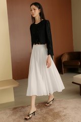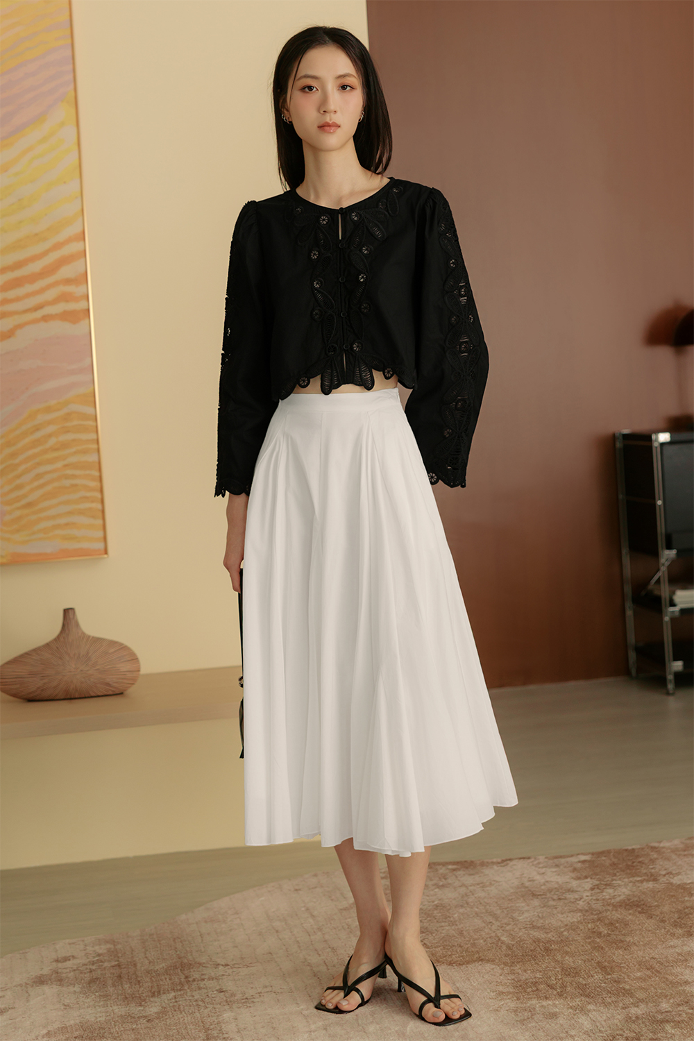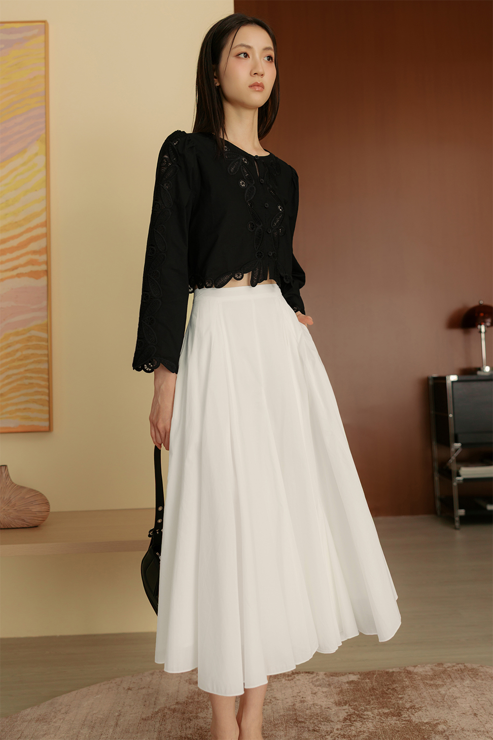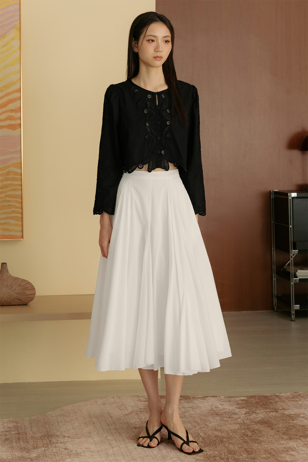 Handkerchief circle skirting with asymmetrical hemline.