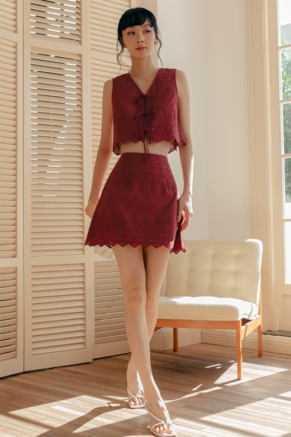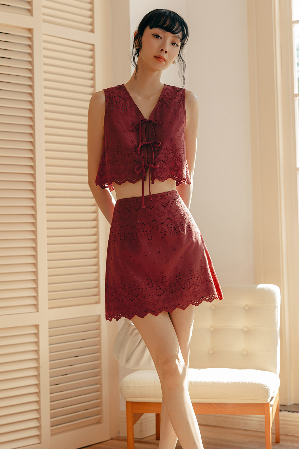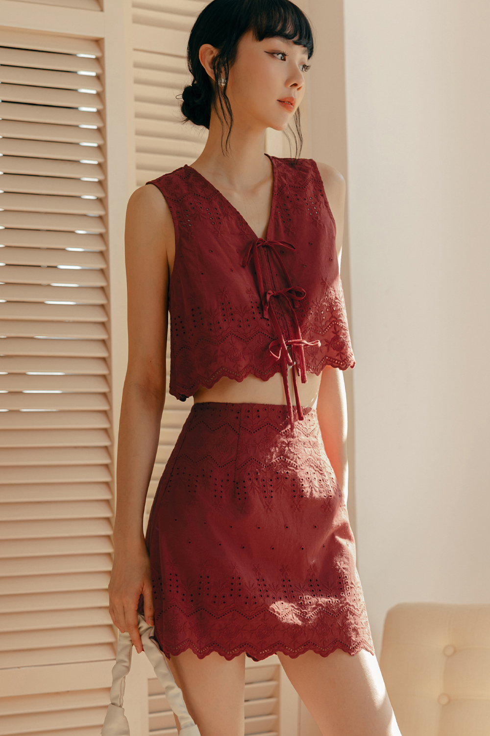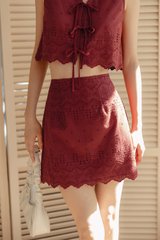 ARIE EMBROIDERY SKIRT IN CHERRY