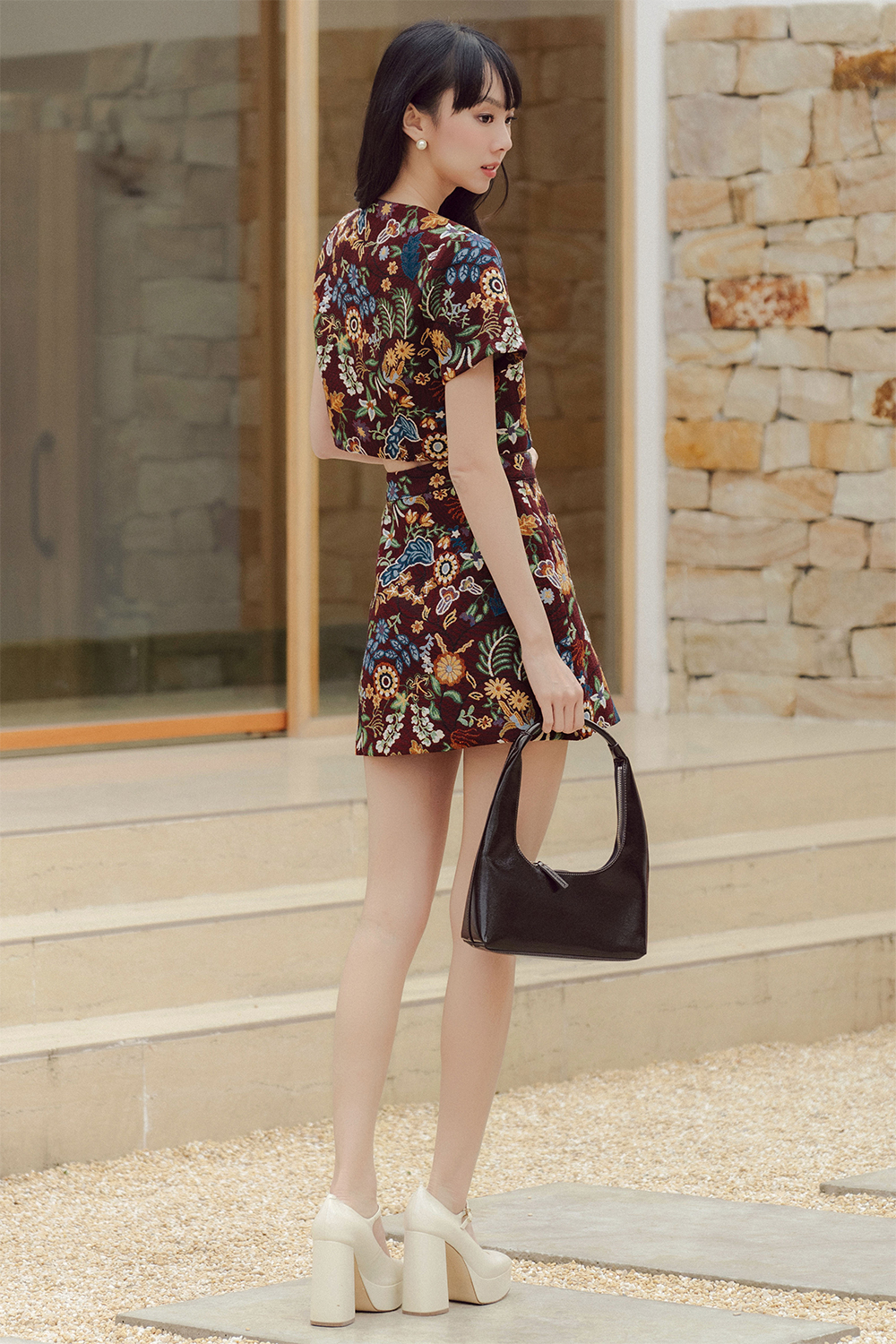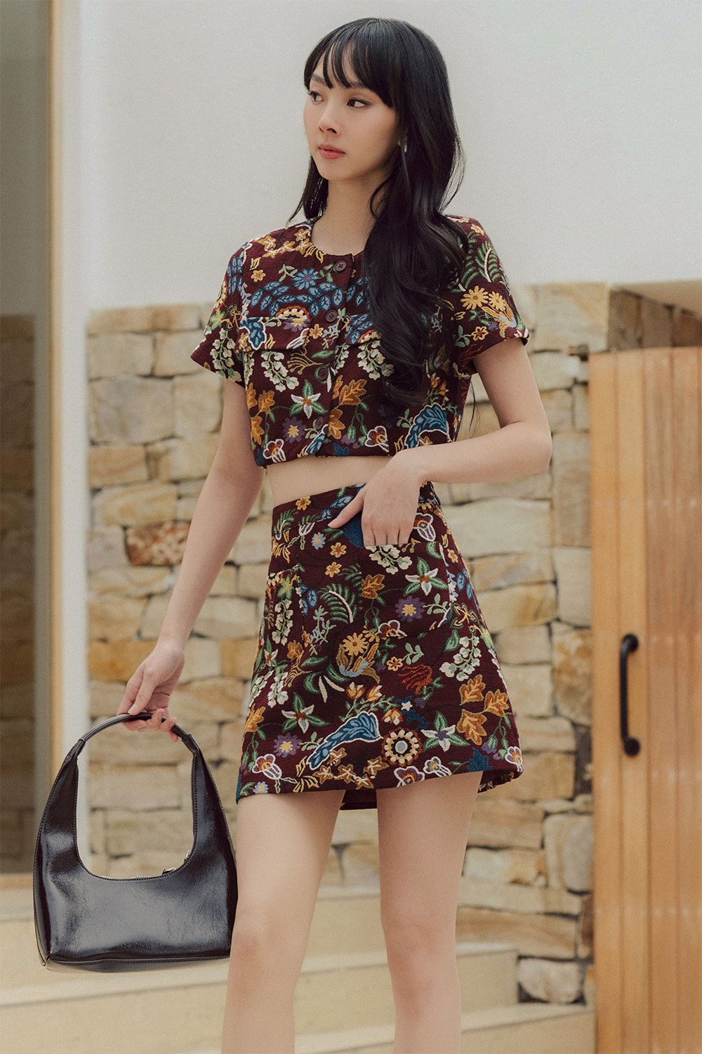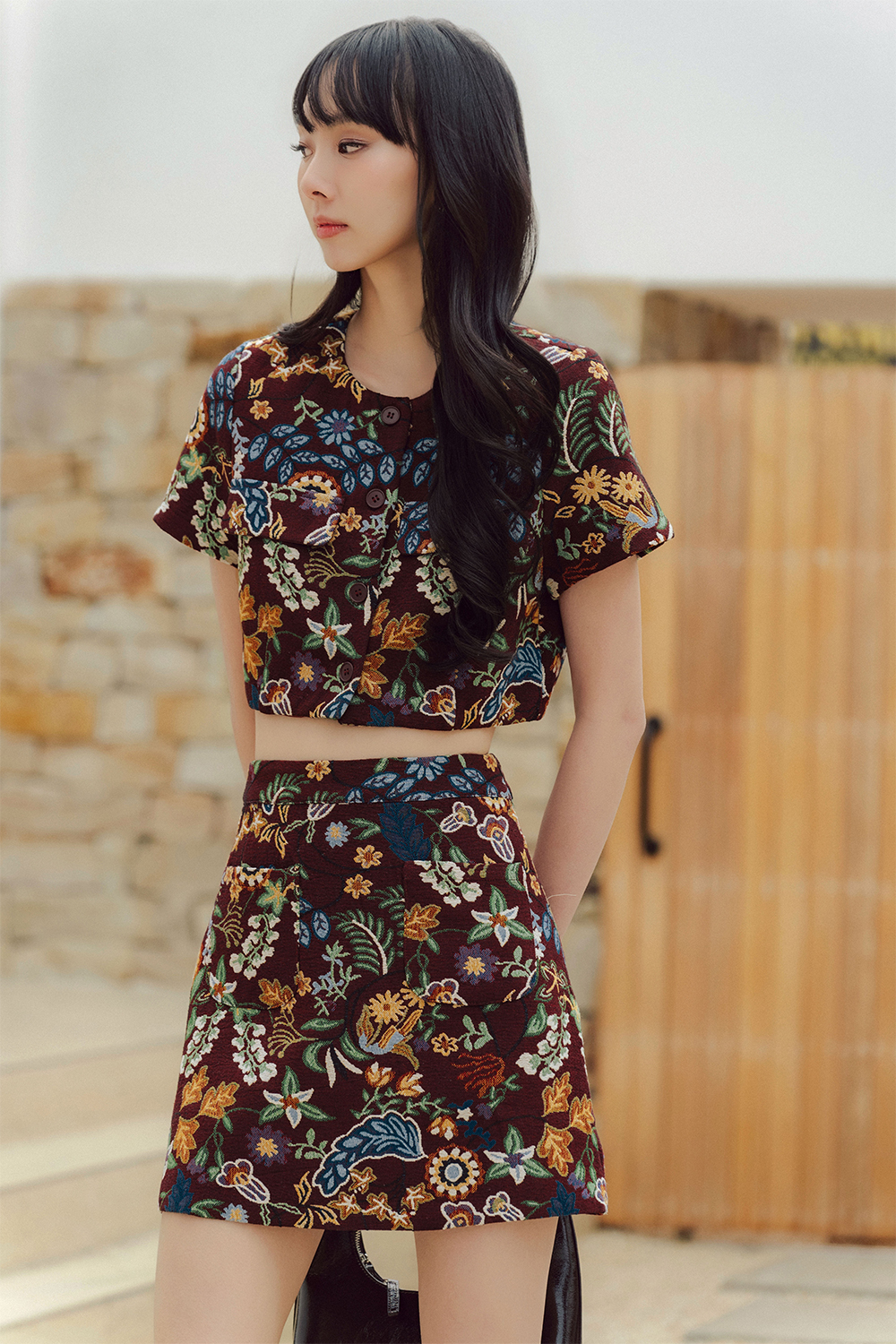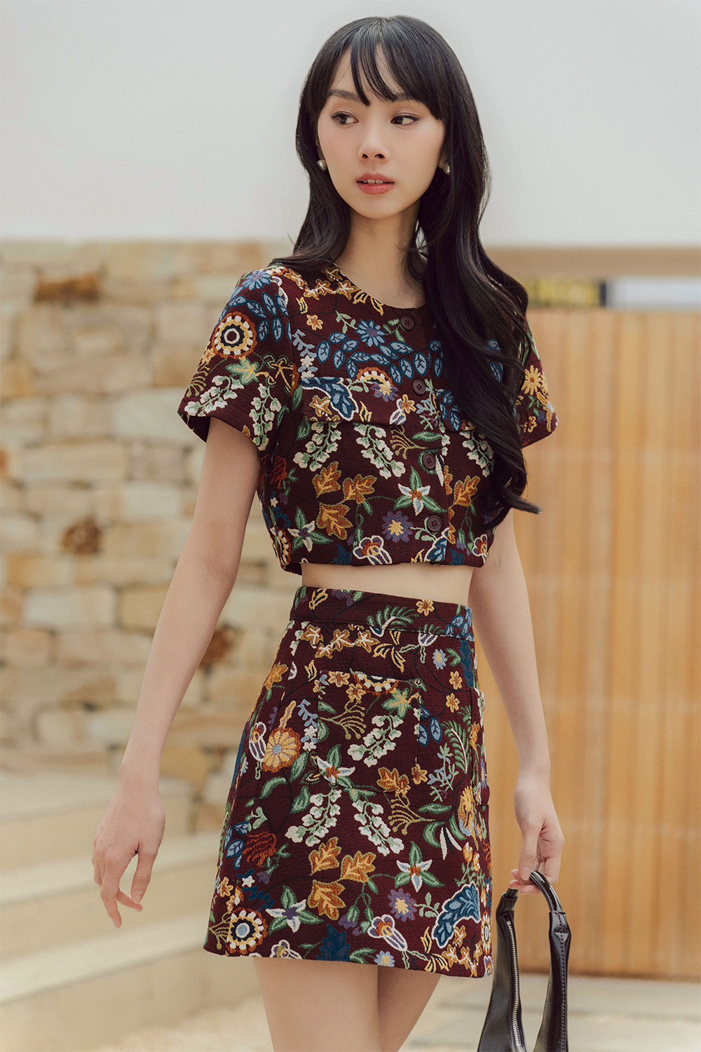 ITZEL BROCADE SKIRT IN BURGUNDY