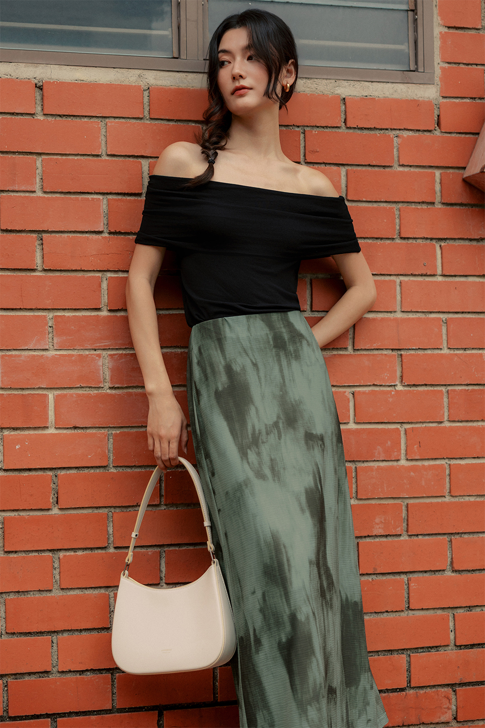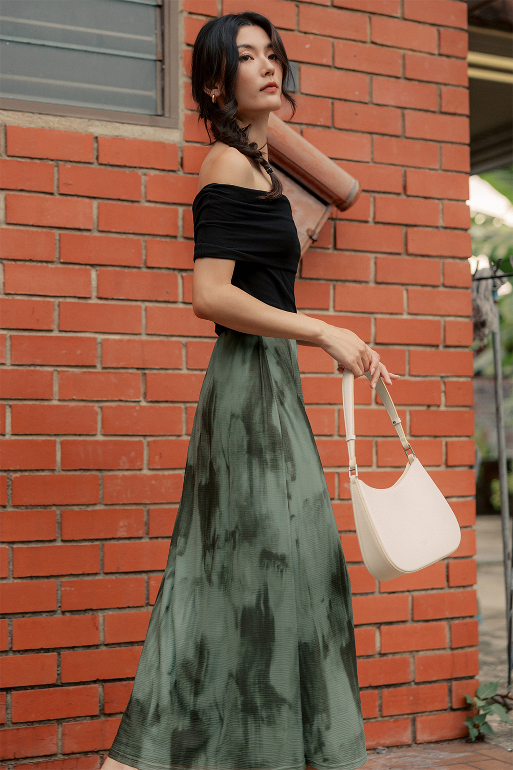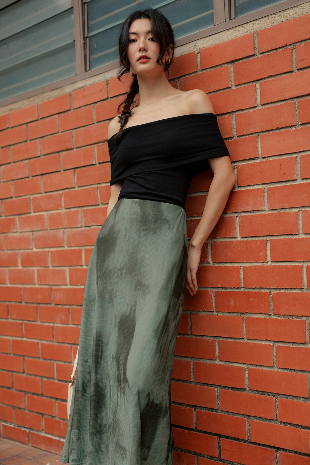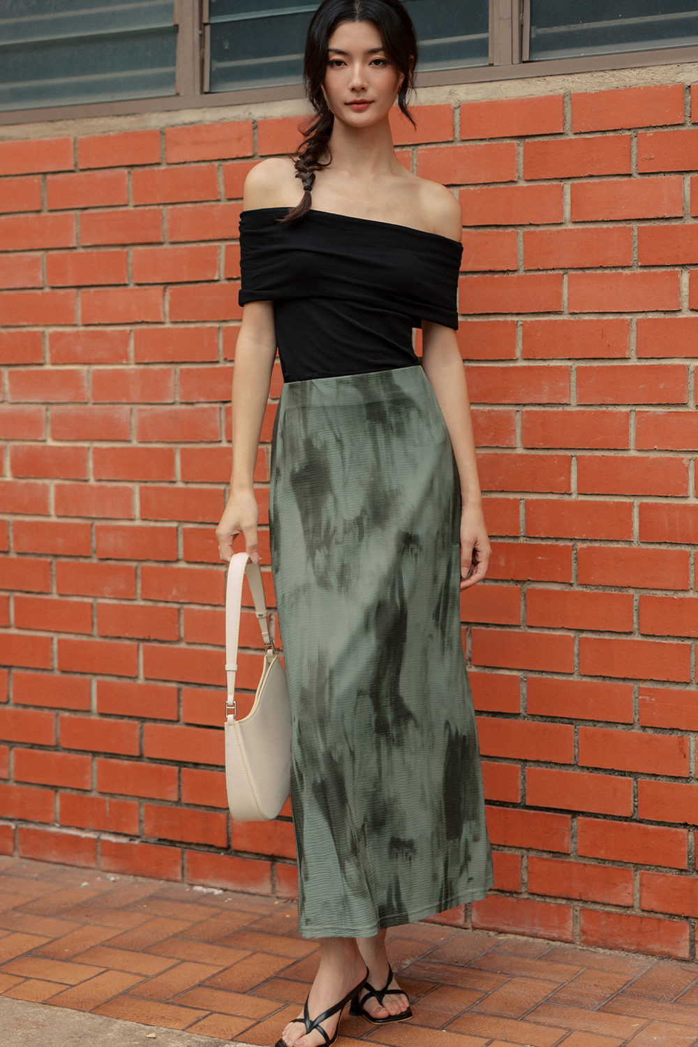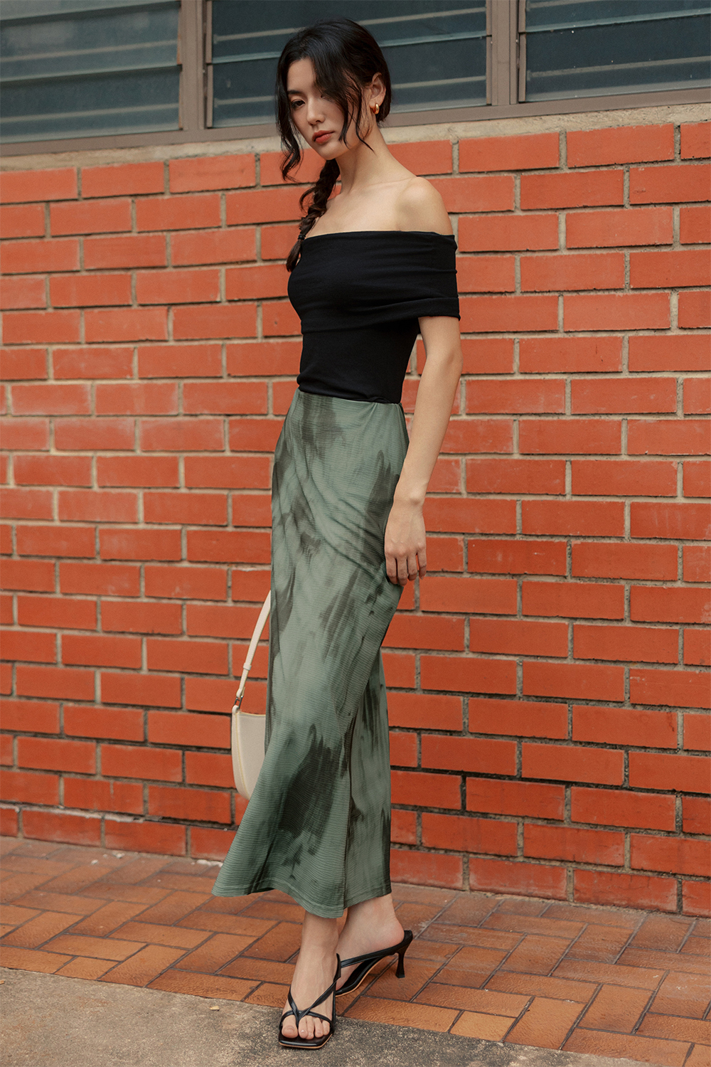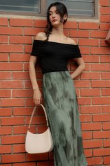 Elastic waistband. Bias cut.