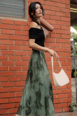 Features watercolour tie-dye abstracts printed on mesh-like textured tulle fabric.