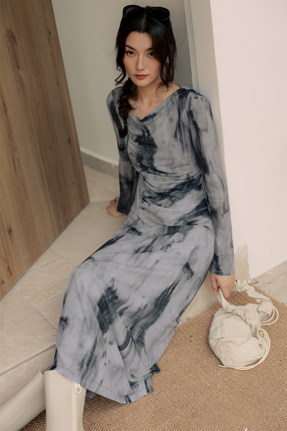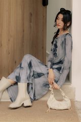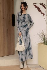 Features watercolour tie-dye abstracts printed on mesh-like textured tulle fabric.