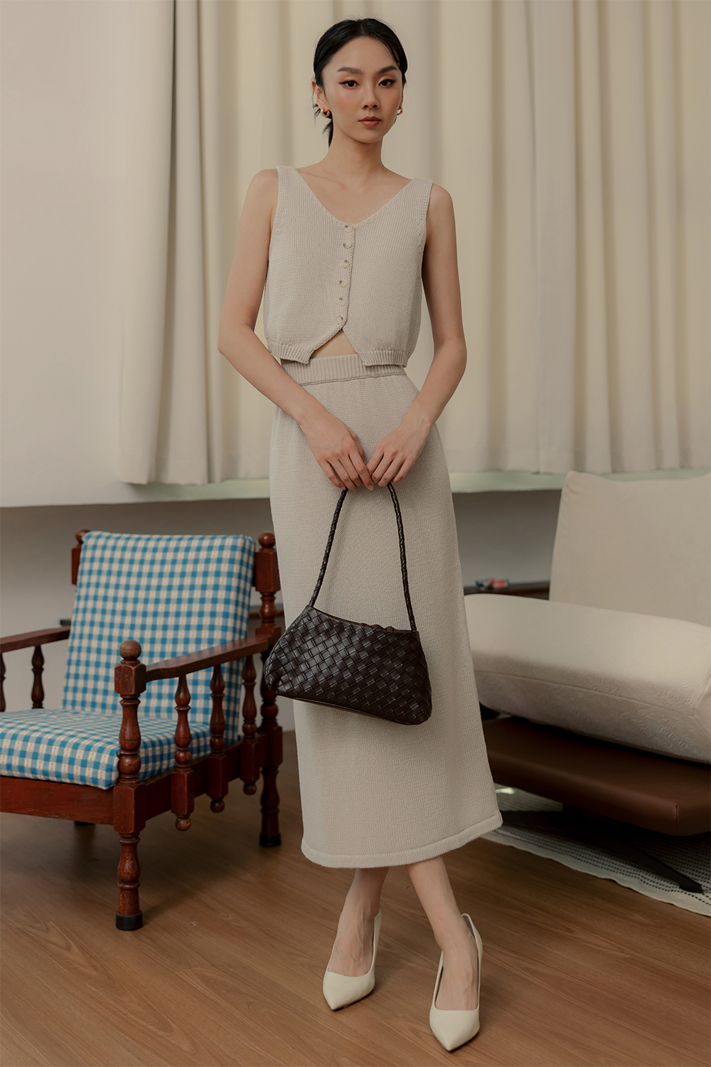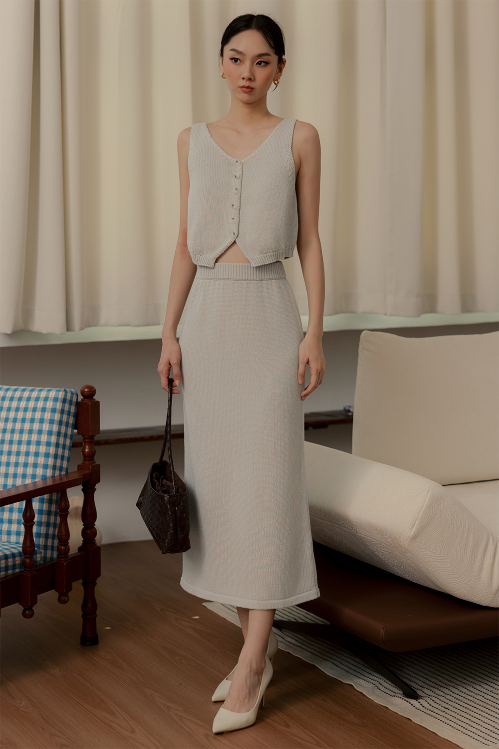 MAREN KNITTED MIDI SKIRT IN PEBBLE