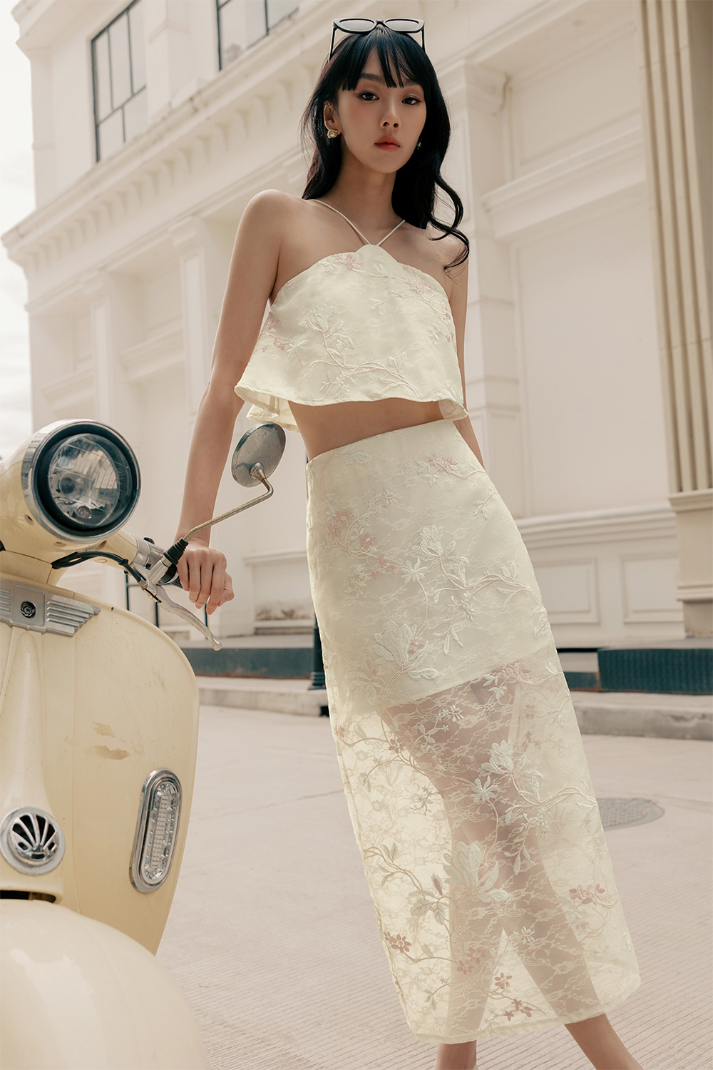 AKI EMBROIDERY ORGANZA PADDED TOP