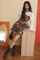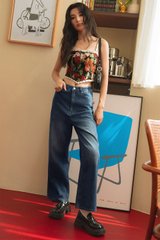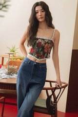 Crochet petals trimmings at straps, around neckline and hem of top.