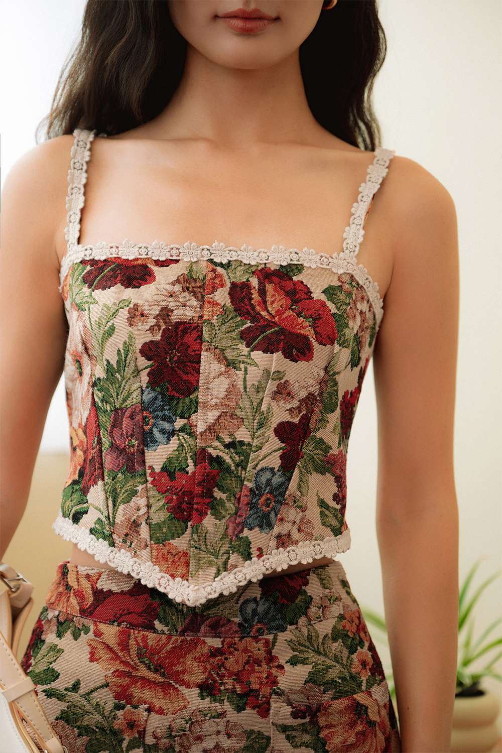 BRIDGET CORSET BROCADE TOP IN CREAM