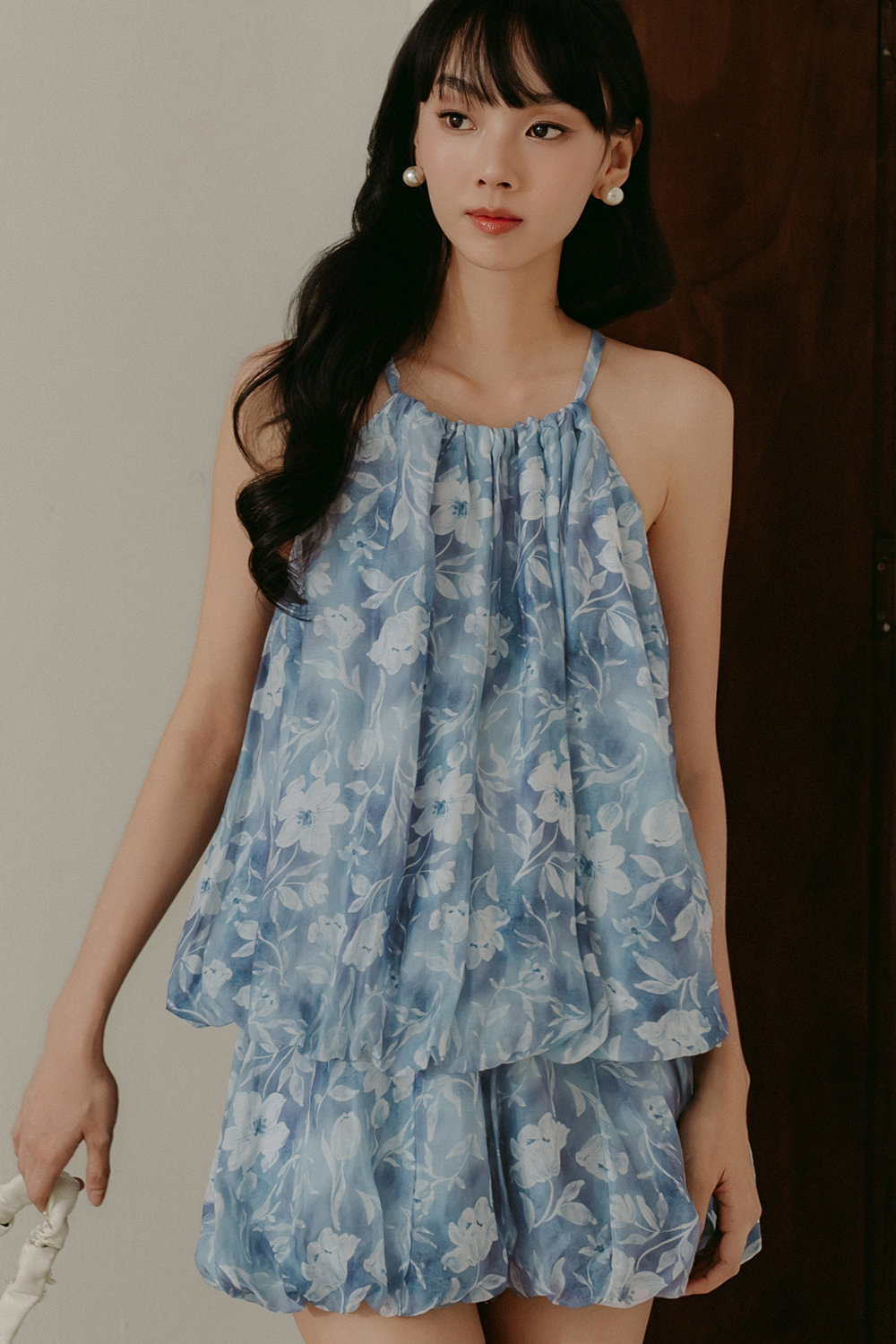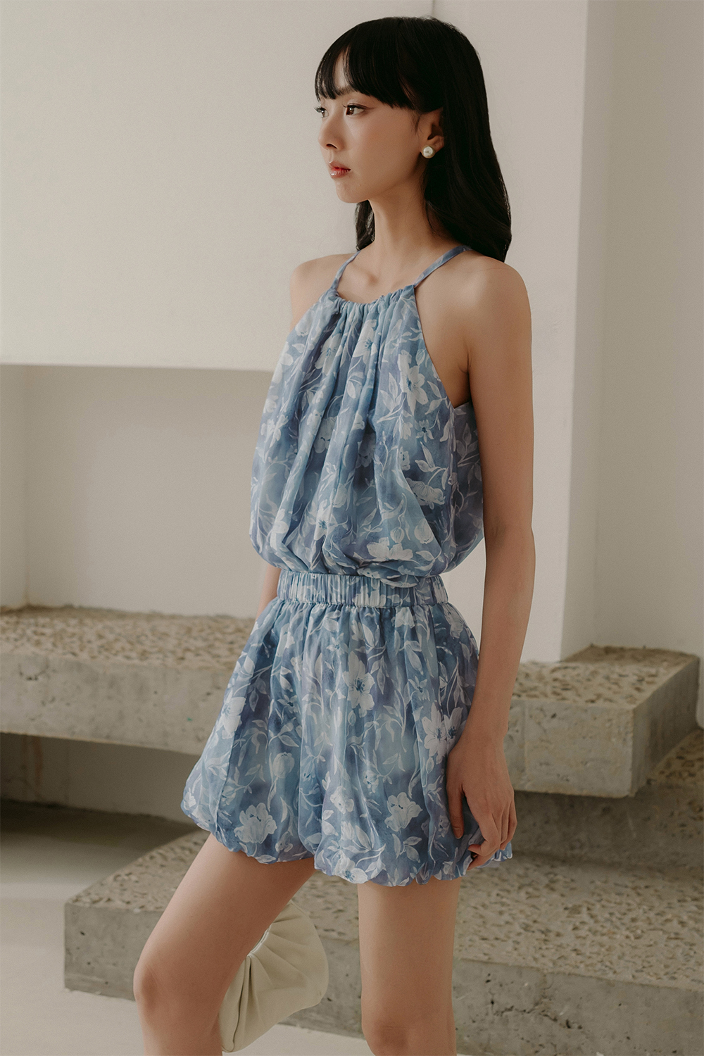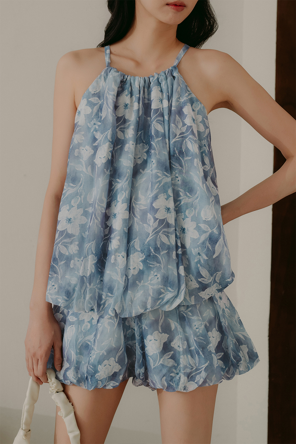 Slight babydoll cut with elastic bubble hem.