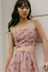Gathered ruched details at chest front and back. Adjustable straps.