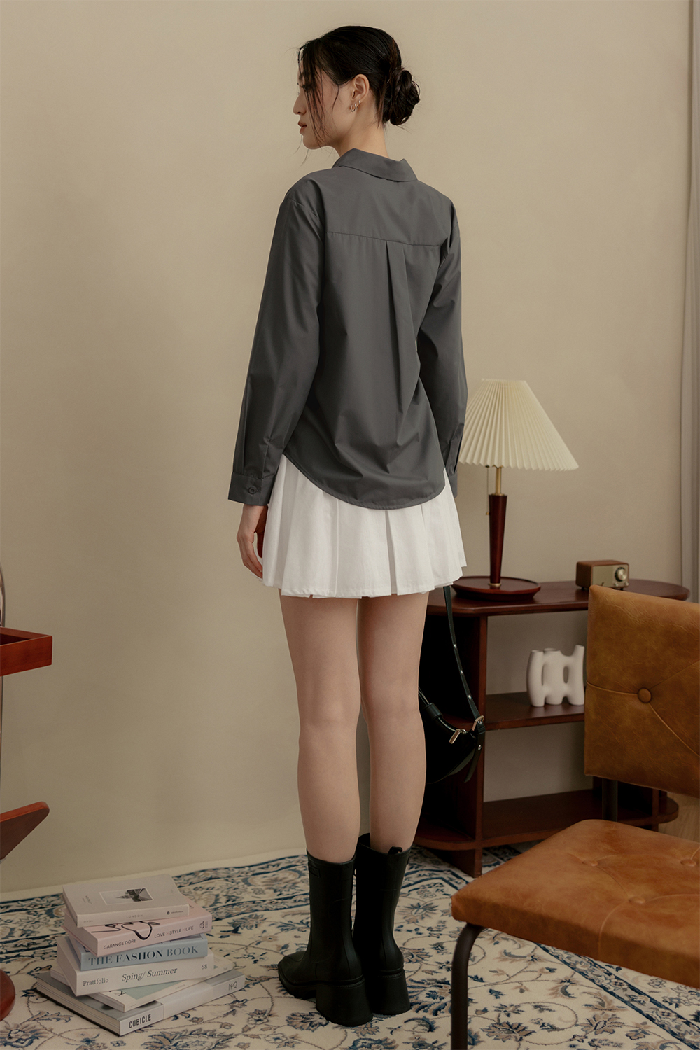 Paneling cut with box pleat detail at middle back.