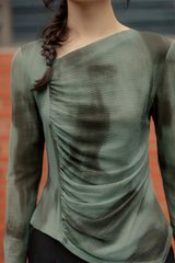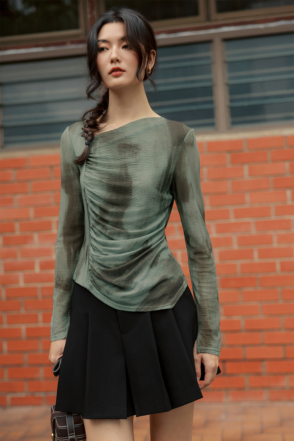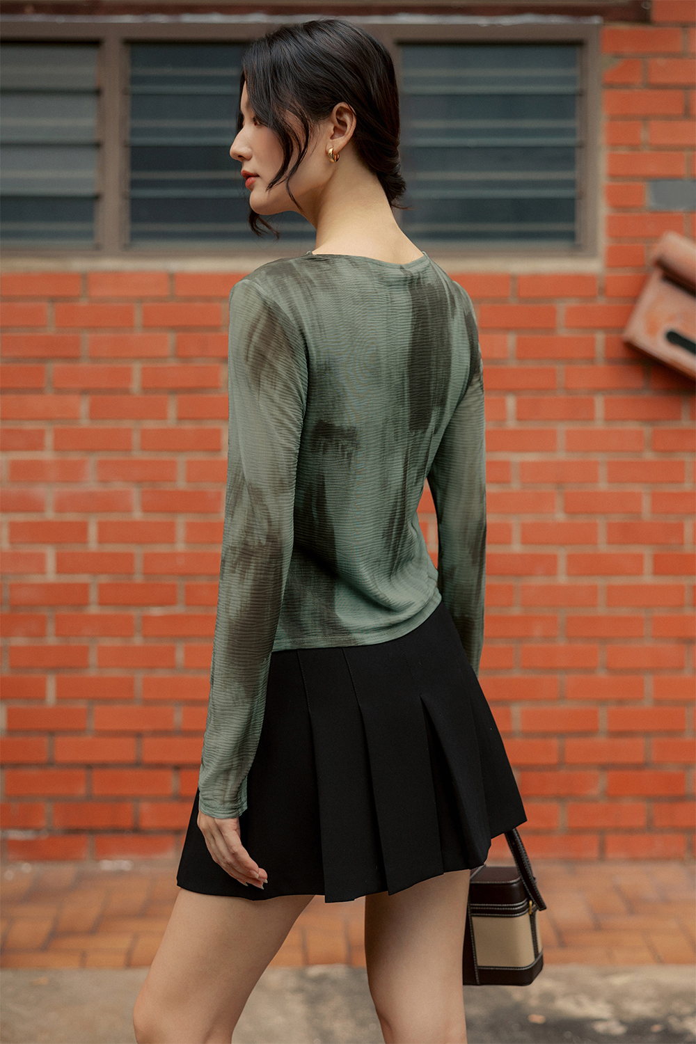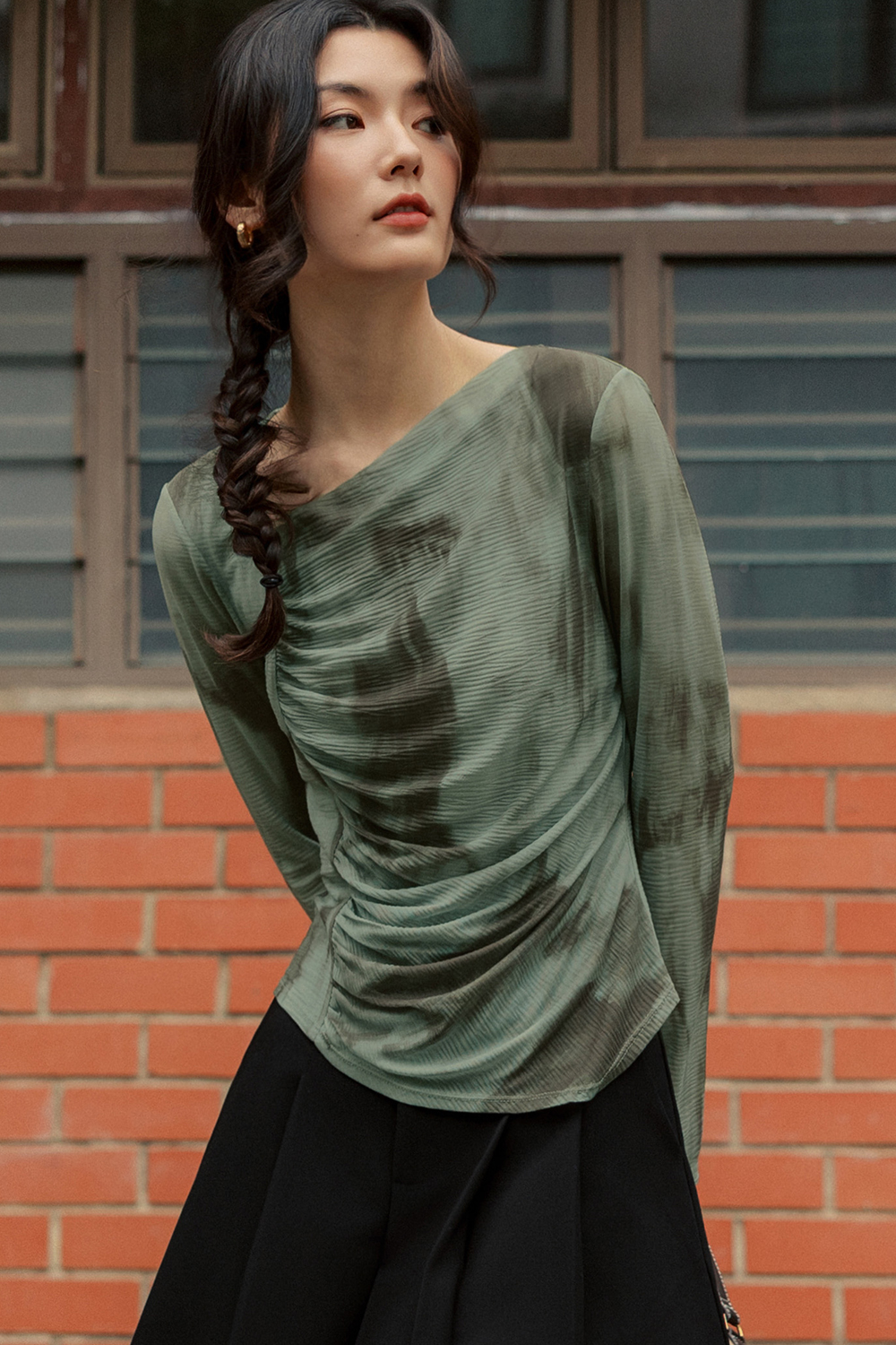 Features watercolour tie-dye abstracts printed on mesh-like textured tulle fabric.