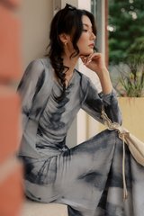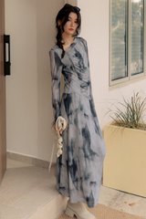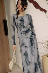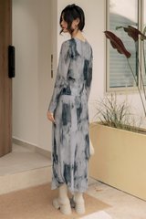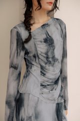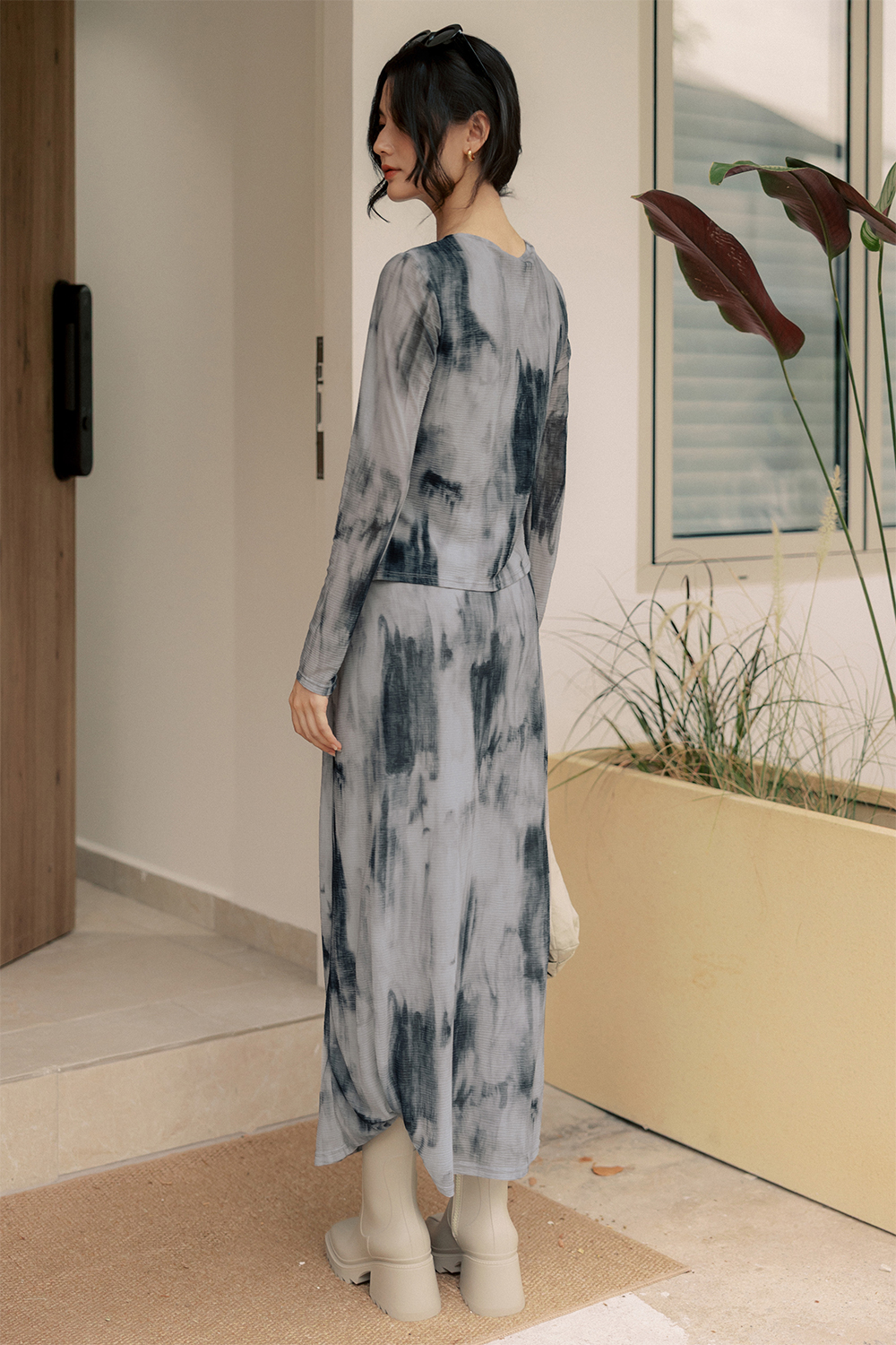 Features watercolour tie-dye abstracts printed on mesh-like textured tulle fabric.