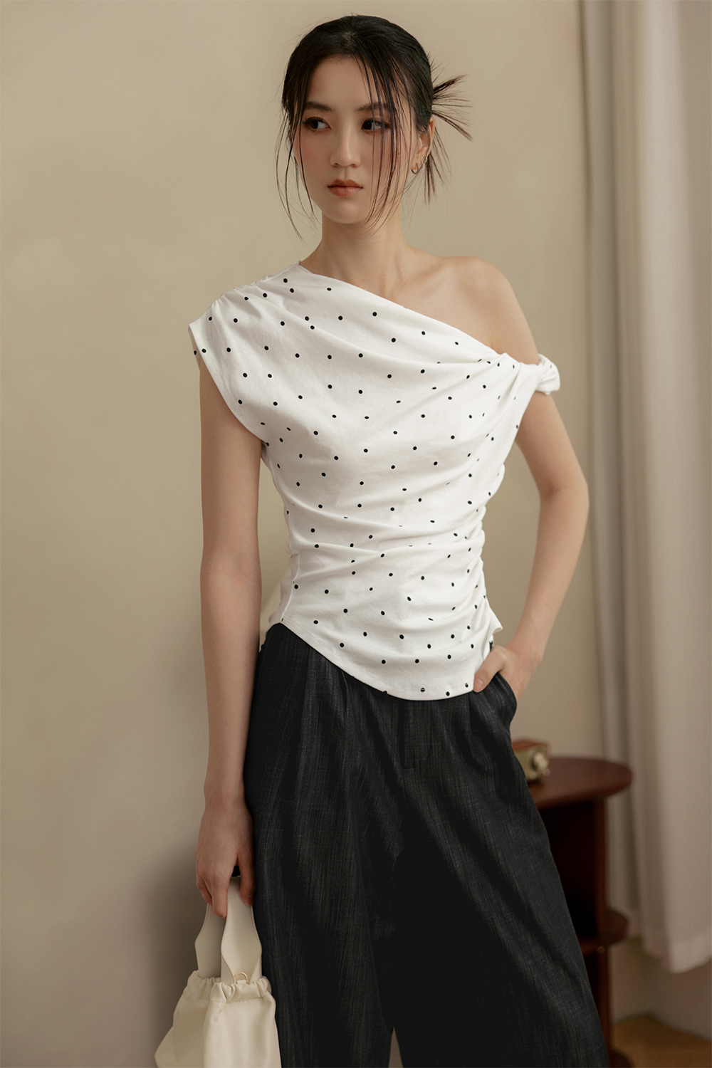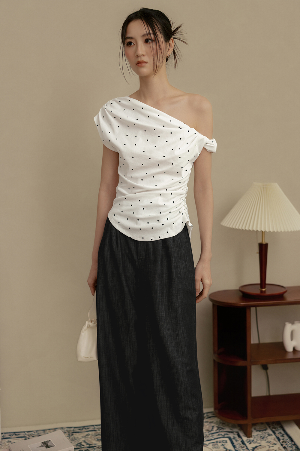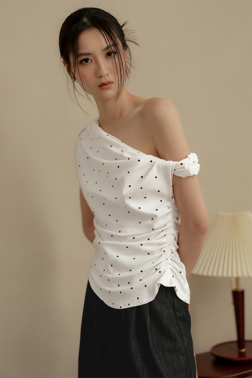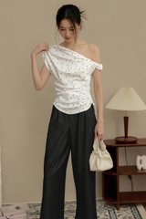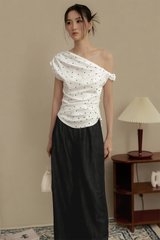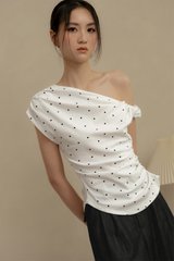 LOLA POLKA DOT RUCHED TOP IN WHITE
