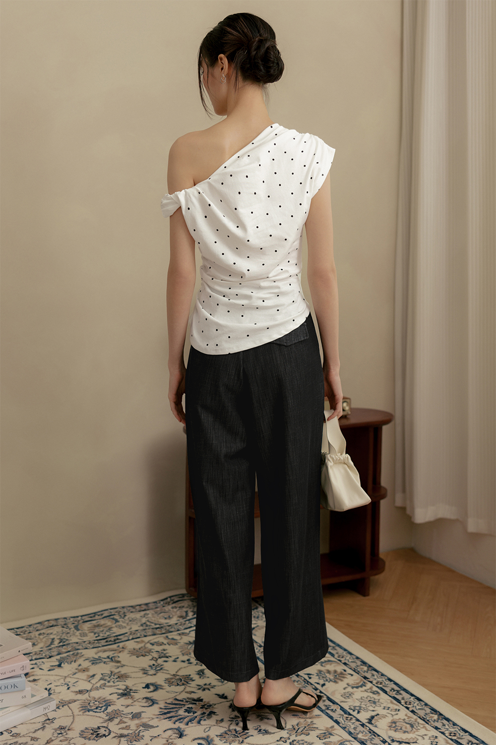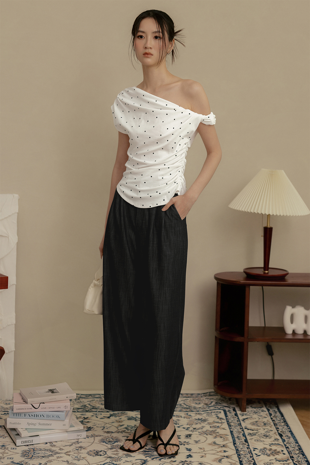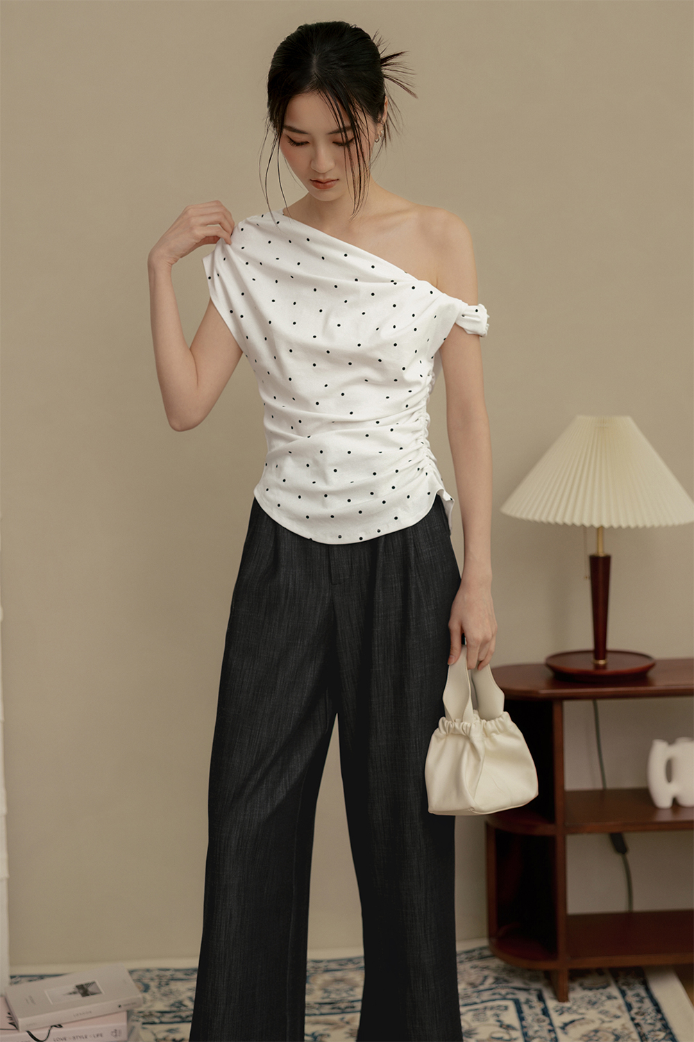 LOLA POLKA DOT RUCHED TOP IN WHITE