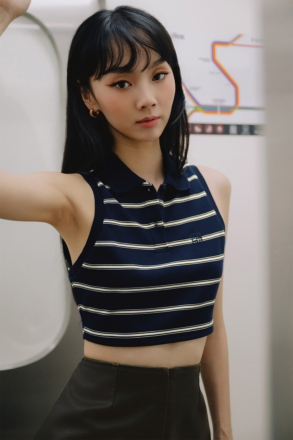 Ribbed polo collar with functional buttons.