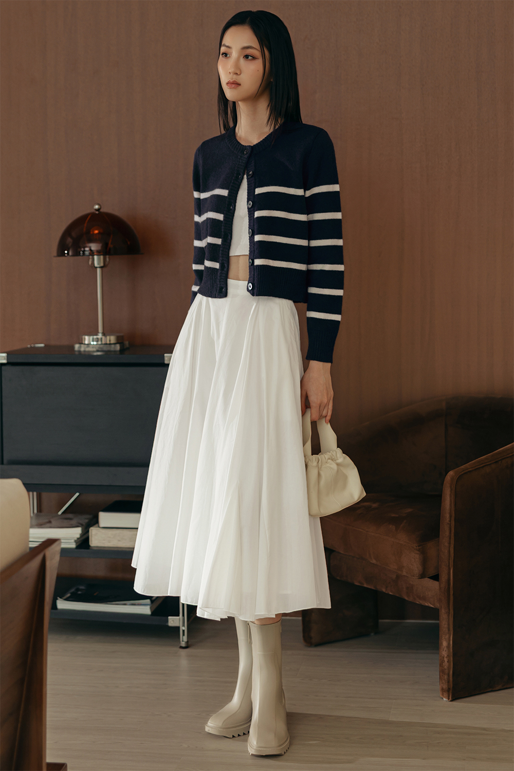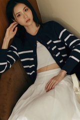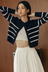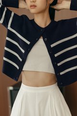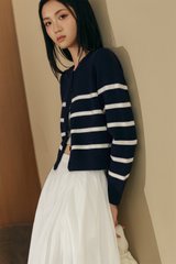 MAYA STRIPE KNIT CARDIGAN IN NAVY