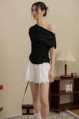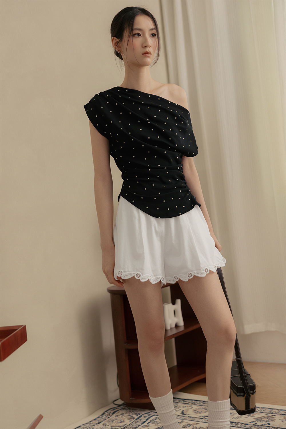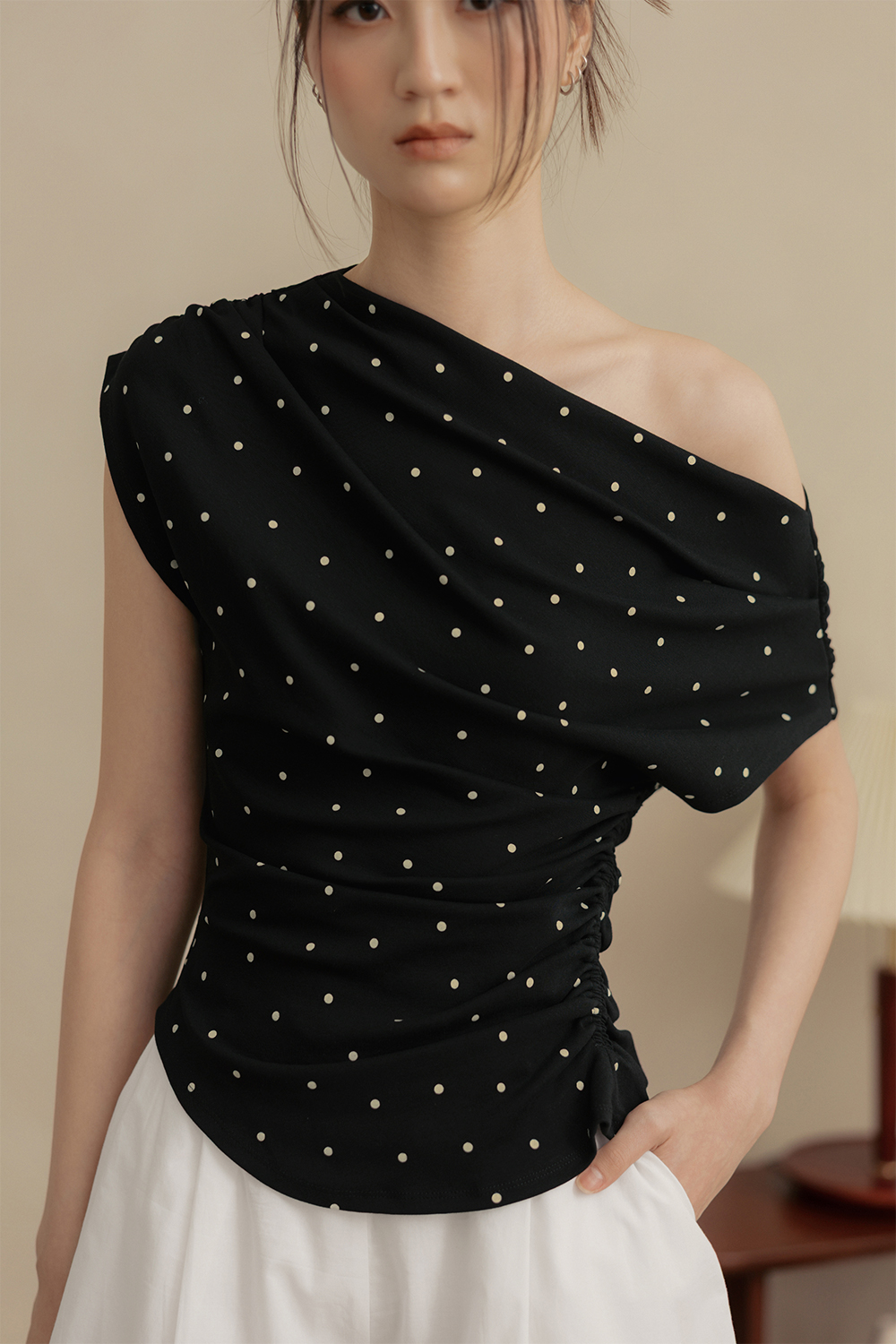 Can be worn as both boat or asymmetrical neckline, or off shoulder.